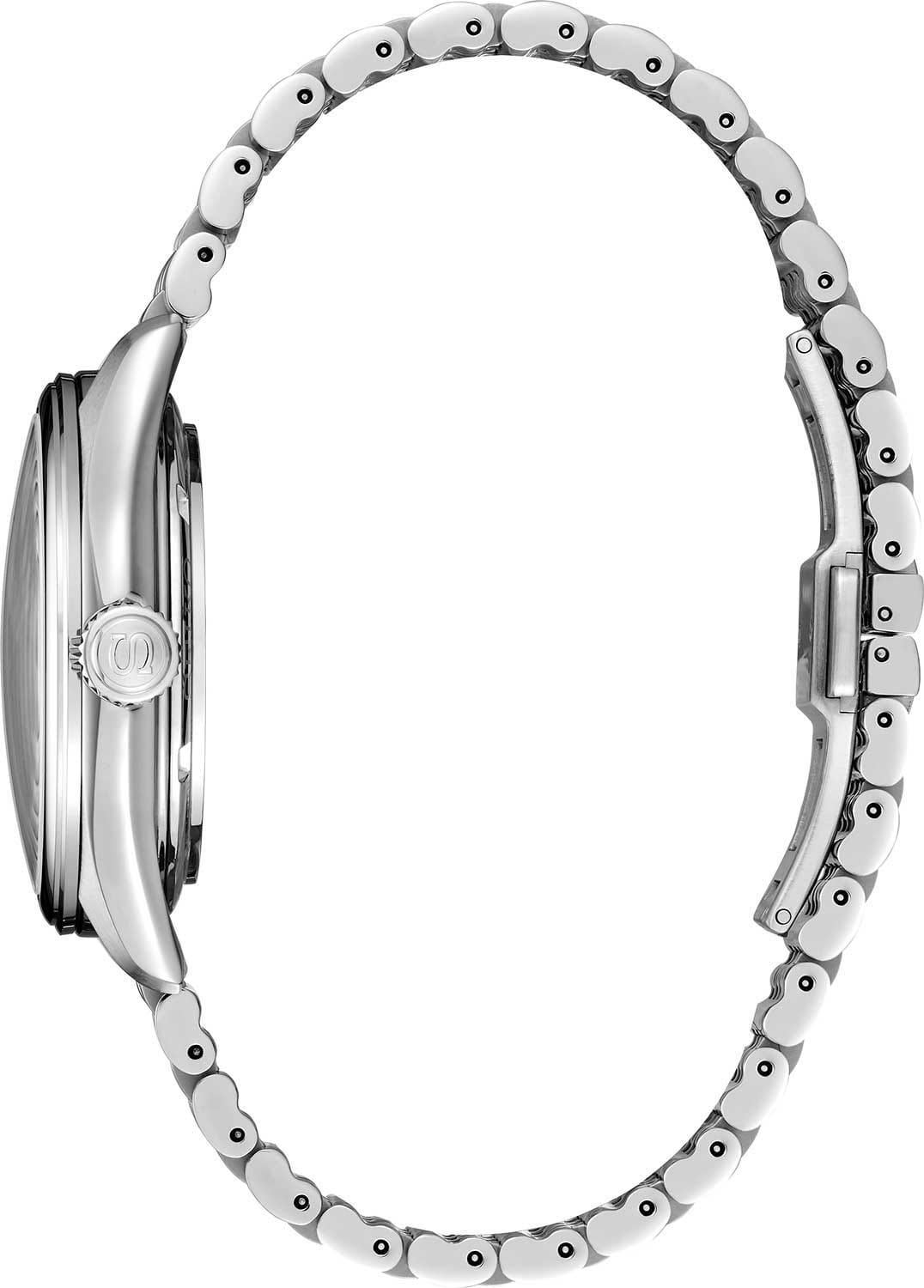 Механические часы Seiko Presage Classic SPB471 — это сочетание японского мастерства, технологичности и эстетики. Серия вдохновлена цветами и текстурами традиционных японских ремёсел, что нашло своё отражение в изысканном дизайне и высокой функциональности модели. Часы оснащены калибром 6R5J — надёжным механизмом с автоподзаводом и возможностью ручной подзаводки. Механизм работает на частоте 21 600 полуколебаний в час, имеет 24 драгоценных камня и обеспечивает запас хода до 72 часов. Также реализована функция стоп-секунды для точной установки времени и защита от магнитных полей до 4800 А/м. Через прозрачное окошко на циферблате можно наблюдать за работой механизма, а также отслеживать время в двух форматах — 12-часовом и 24-часовом. Циферблат чёрного цвета выполнен в стиле «широ-иро» — в оттенке неотбелённого шелка, который при разном освещении играет глубокими переливами. Его поверхность украшена тонкой текстурой, создающей ощущение благородства и изысканности. Метки выполнены в виде аккуратных штрихов, а центральные стрелки обеспечивают чёткость и лёгкость считывания информации. Защиту циферблата обеспечивает сапфировое стеклоСапфировое стеклоПрочный и надёжный материал из кристалла сапфира синтетического происхождения, характеризующийся особой твёрдостью и устойчивостью к царапинам и повреждениям. выпуклой формы с антибликовым покрытием с обеих сторон. Корпус изготовлен из нержавеющей стали, а задняя крышка — завинчивающаяся и прозрачная, что позволяет рассмотреть детали работы механизма. Браслет выполнен из стали и оснащён трёхсгибной раскладной застёжкойРаскладная застёжкаТакой тип застёжки используется только на браслетах из металла. Она никогда не раскрывается полностью, происходит разделение на 2 и более частей. Раскладывающая застёжка снизит вероятность потери часов к минимуму., обеспечивающей комфорт и уверенную фиксацию на запястье. Часы водонепроницаемы до 100 метров , что позволяет использовать их при плавании или занятиях водными видами спорта без глубокого погружения. Эти часы станут универсальным аксессуаром для тех, кто ценит сочетание культурного наследия, технологий и эстетики — идеальный выбор для повседневной носки и торжественных случаев.