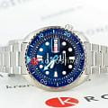 Seiko Prospex PADI Special Edition SRPK01K1 — профессиональные автоматические часы, созданные в рамках сотрудничества с PADI, крупнейшей организацией инструкторов по дайвингу. Массивный корпус диаметром 45 мм выполнен из нержавеющей стали и защищён завинчивающейся задней крышкой и заводной головкой. Циферблат закрыт прочным сапфировым стекломСапфировое стеклоПрочный и надёжный материал из кристалла сапфира синтетического происхождения, характеризующийся особой твёрдостью и устойчивостью к царапинам и повреждениям. с антибликовым покрытиемАнтибликовое покрытиеСлой оксида металла в 0,13-0,3 микрон, благодаря которому стекло часов не бликует и не отражает свет. Антибликовое покрытие уменьшает отражение света в 10 раз, обеспечивая отличную читаемость показателей циферблата. и увеличительным стеклом над календарём. Градиентный синий циферблат с волнистым узором имитирует солнечные блики на воде и украшен логотипом PADI. Метки и стрелки покрыты люминесцентным покрытиемЛюминесцентное покрытиеПозволяет считывать показания времени в темноте. Производители наносят на стрелки, часовые индексы, безель или поверхность циферблата светонакопительный состав, дающий холодное свечение. LumiBrite для превосходной читаемости в темноте и под водой. БезельБезельВнешний ободок, закрепляющий стекло. В спортивных часах так называется поворотное кольцо с делениями на циферблате, выполняет роль таймера – замеряет отрезки времени на шкале. Неподвижный безель – элемент декора. Однонаправленно вращающийся безель на дайверских часах позволяет фиксировать моменты погружения и выныривания на поверхность. с PVD-покрытиемPVDУльтратонкое покрытие наносится в технике вакуумного напыления, сочетает в себе нитрид титана особой прочности со слоем золота или оксида хрома. Несёт в себе декоративную или защитную функцию.. Модель оснащена автоматическим механизмом Seiko 4R36 с ручным заводом, 24 камнями и функцией остановки секундной стрелки. Запас хода составляет около 41 часа. На циферблате — отображение времени, даты и дня недели на позиции «3 часа». Браслет из нержавеющей стали снабжён тройной раскладной застёжкойРаскладная застёжкаТакой тип застёжки используется только на браслетах из металла. Она никогда не раскрывается полностью, происходит разделение на 2 и более частей. Раскладывающая застёжка снизит вероятность потери часов к минимуму. с кнопками и удлинением для дайверовУдлинение для дайверовЗастёжка с удлинением для дайверов представляет собой безопасное крепление, которое позволяет надевать часы поверх гидрокостюма. Гибкая застёжка удлиняется на 1-2 миллиметра.. Часы соответствуют ISO-стандарту и обладают водонепроницаемостью до 200 метров, что делает их надёжным выбором как для дайвинга, так и для повседневной носки. SRPK01 — мощная и функциональная модель с морским характером и профессиональными возможностями.