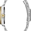 Женские японские часы Seiko Discover More SUR578 c кварцевым механизмом с высокой точностью с калибром 6N42. Сапфировое стеклоСапфировое стеклоПрочный и надёжный материал из кристалла сапфира синтетического происхождения, характеризующийся особой твёрдостью и устойчивостью к царапинам и повреждениям., устойчивое к появлению царапин, обладающее высокой прозрачностью. Класс водозащиты: 100 метров, позволит плавать, нырять и заниматься другими водными видами спорта. Корпус диаметром 34 мм и браслет часов изготовлен из нержавеющей стали с PVDPVDУльтратонкое покрытие наносится в технике вакуумного напыления, сочетает в себе нитрид титана особой прочности со слоем золота или оксида хрома. Несёт в себе декоративную или защитную функцию. покрытием. Циферблат представлен с метками в виде штрихов. Стрелки и метки с люминесцентным покрытиемЛюминесцентное покрытиеПозволяет считывать показания времени в темноте. Производители наносят на стрелки, часовые индексы, безель или поверхность циферблата светонакопительный состав, дающий холодное свечение. LumiBrite. Браслет с раскладной застёжкойРаскладная застёжкаТакой тип застёжки используется только на браслетах из металла. Она никогда не раскрывается полностью, происходит разделение на 2 и более частей. Раскладывающая застёжка снизит вероятность потери часов к минимуму. с фиксатором. Окошко даты находится в положении 3 часа. Seiko — это гармония изящного дизайна и технологичной надёжности, компактный и стильный выбор для повседневной классики.