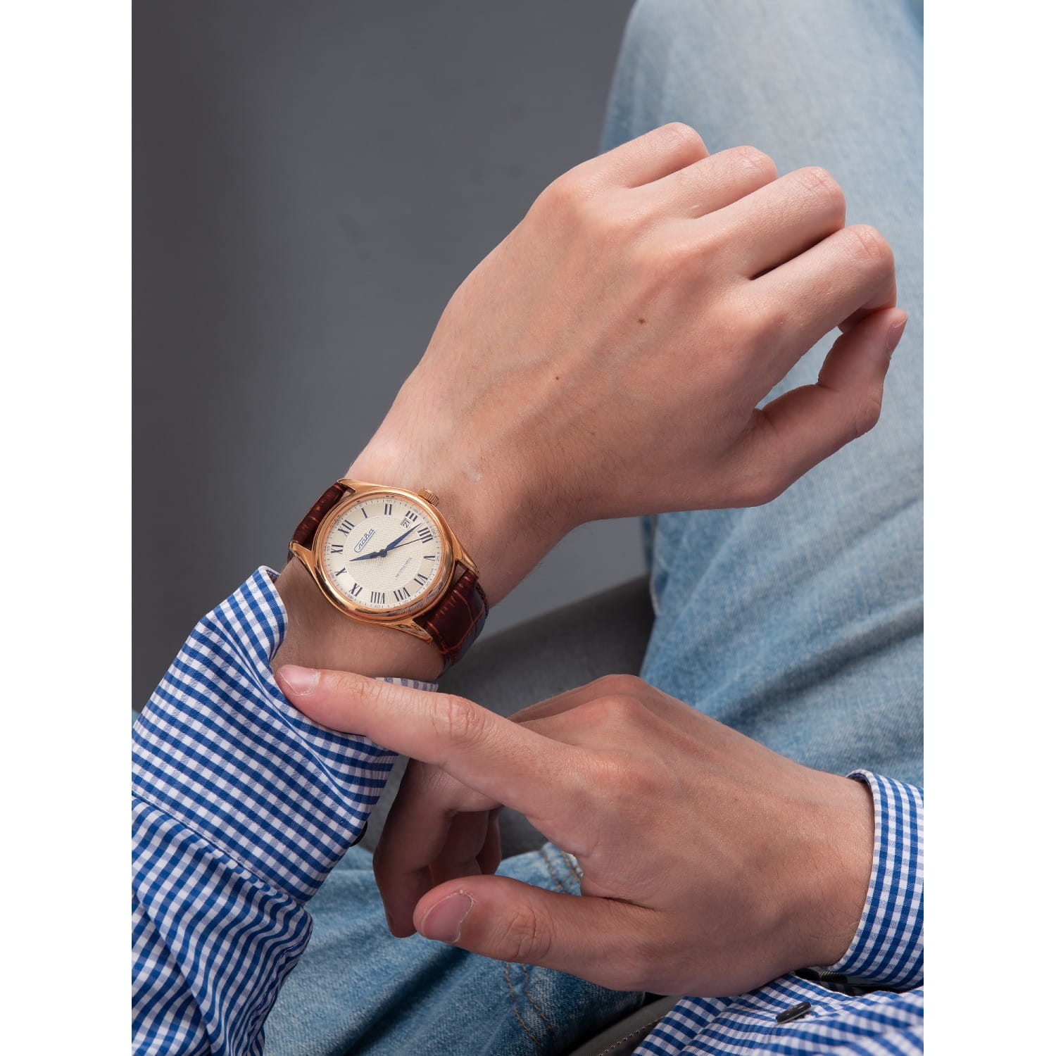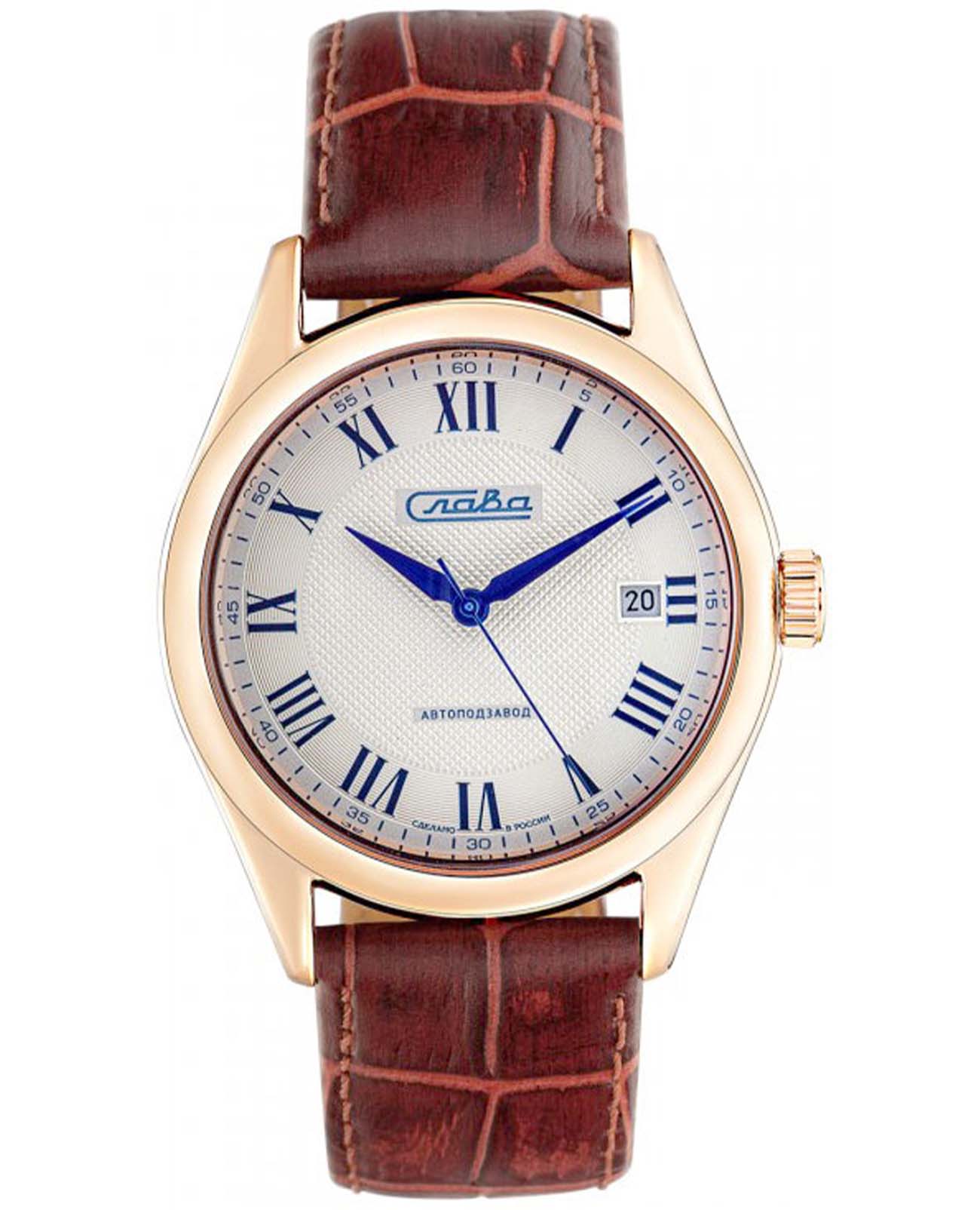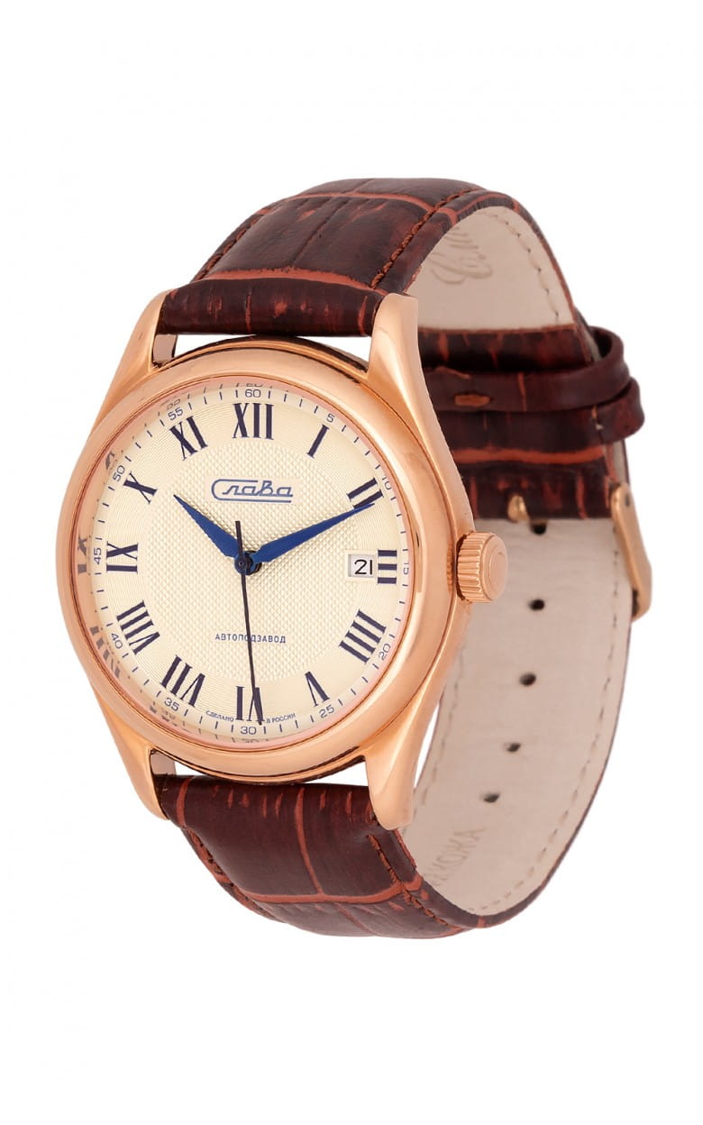 Российские механические часы с автоподзаводом Слава Премьер 1493294/300-8215. Корпус часов выполнен из стали с IP-покрытиемIP-покрытиеМетод ионного напыления. Демонстрирует повышенную устойчивость к истиранию, окислению и химическим веществам. Под воздействием высокого давления и температуры около 1500°C молекулы металла надёжно соединяются с частицами корпуса часов., что придает им долговечность и устойчивость к внешним воздействиям. Сапфировое стеклоСапфировое стеклоПрочный и надёжный материал из кристалла сапфира синтетического происхождения, характеризующийся особой твёрдостью и устойчивостью к царапинам и повреждениям.. Класс водозащиты часов составляет 50 метров, позволит защитить корпус от случайных брызг или капель дождя. Кожаный браслет с стандартной застежкой обеспечивает комфортное ношение и надежную фиксацию на запястье. Эти часы идеально подойдут для повседневного использования, сочетая в себе стиль, надежность и функциональность. Окошко даты находится в положении 3 часа.
