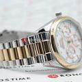 Женские наручные часы Slazenger SL.09.2063.4.04 сочетают в себе классический дизайн и высокое качество исполнения. Модель обладает круглым корпусом диаметром 36 мм, изготовленным из суперметалла, что обеспечивает устойчивость к внешним воздействиям. Браслет выполнен из суперметалла с частичным IP-покрытиемIP-покрытиеМетод ионного напыления. Демонстрирует повышенную устойчивость к истиранию, окислению и химическим веществам. Под воздействием высокого давления и температуры около 1500°C молекулы металла надёжно соединяются с частицами корпуса часов. на раскладной застёжкеРаскладная застёжкаТакой тип застёжки используется только на браслетах из металла. Она никогда не раскрывается полностью, происходит разделение на 2 и более частей. Раскладывающая застёжка снизит вероятность потери часов к минимуму.. Неподвижный безельБезельВнешний ободок, закрепляющий стекло. В спортивных часах так называется поворотное кольцо с делениями на циферблате, выполняет роль таймера – замеряет отрезки времени на шкале. Неподвижный безель – элемент декора. Однонаправленно вращающийся безель на дайверских часах позволяет фиксировать моменты погружения и выныривания на поверхность. из суперметалла с IP-покрытиемIP-покрытиеМетод ионного напыления. Демонстрирует повышенную устойчивость к истиранию, окислению и химическим веществам. Под воздействием высокого давления и температуры около 1500°C молекулы металла надёжно соединяются с частицами корпуса часов. цвета розового золота. Перламутровый циферблат украшен логотипом бренда и метками времени. Имеются дополнительные малые циферблаты для отображения даты, дня недели и текущего времени в 24-часовом формате. Для защиты используется минеральное стеклоМинеральное стеклоМинеральное стекло представляет собой искусственно выращенный минерал кварца. Такое стекло отличается особой устойчивостью к повреждениям и царапинам. Уступает по некоторым качествам сапфировому стеклу., обеспечивающее прочную защиту от царапин. Стрелки и метки имеют люминесцентное покрытиеЛюминесцентное покрытиеПозволяет считывать показания времени в темноте. Производители наносят на стрелки, часовые индексы, безель или поверхность циферблата светонакопительный состав, дающий холодное свечение., что позволяет легко читать время в темноте. Часы работают на японском кварцевом механизме, который обеспечивает точность хода без необходимости подзаводки. Водонепроницаемость часов составляет 3 атмосферы (WR30), что позволяет защитить корпус от случайных брызг или капель дождя.