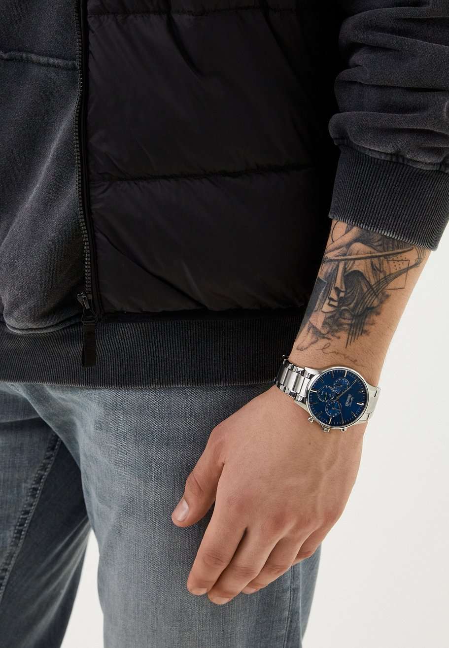 Часы Slazenger SL.09.2214.2.01 — это стильный и функциональный аксессуар для мужчин, который сочетает в себе классический британский дизайн и современные технологии. Эти часы оснащены кварцевым механизмом, обеспечивающим точность и надежность работы. Корпус из металла диаметром 44 мм и толщиной 11 мм придаёт модели прочность и элегантность, а минеральное стеклоМинеральное стеклоМинеральное стекло представляет собой искусственно выращенный минерал кварца. Такое стекло отличается особой устойчивостью к повреждениям и царапинам. Уступает по некоторым качествам сапфировому стеклу. защищает синий циферблат от царапин и повреждений. Серебристый металлический браслет с шириной 22 мм дополняет общий стиль часов, обеспечивая комфорт и надежность при ношении. Раскладная застёжкаРаскладная застёжкаТакой тип застёжки используется только на браслетах из металла. Она никогда не раскрывается полностью, происходит разделение на 2 и более частей. Раскладывающая застёжка снизит вероятность потери часов к минимуму. позволяет легко и удобно надевать и снимать часы. Уровень водозащиты WR 50 позволяет не беспокоиться о воздействии влаги, что делает эту модель подходящей для повседневного использования. Особенностью данной модели является наличие дополнительных функций: отображение даты и дня недели, а также текущего времени в 24-часовом формате на малых циферблатах. Это делает часы не только стильным, но и практичным аксессуаром.