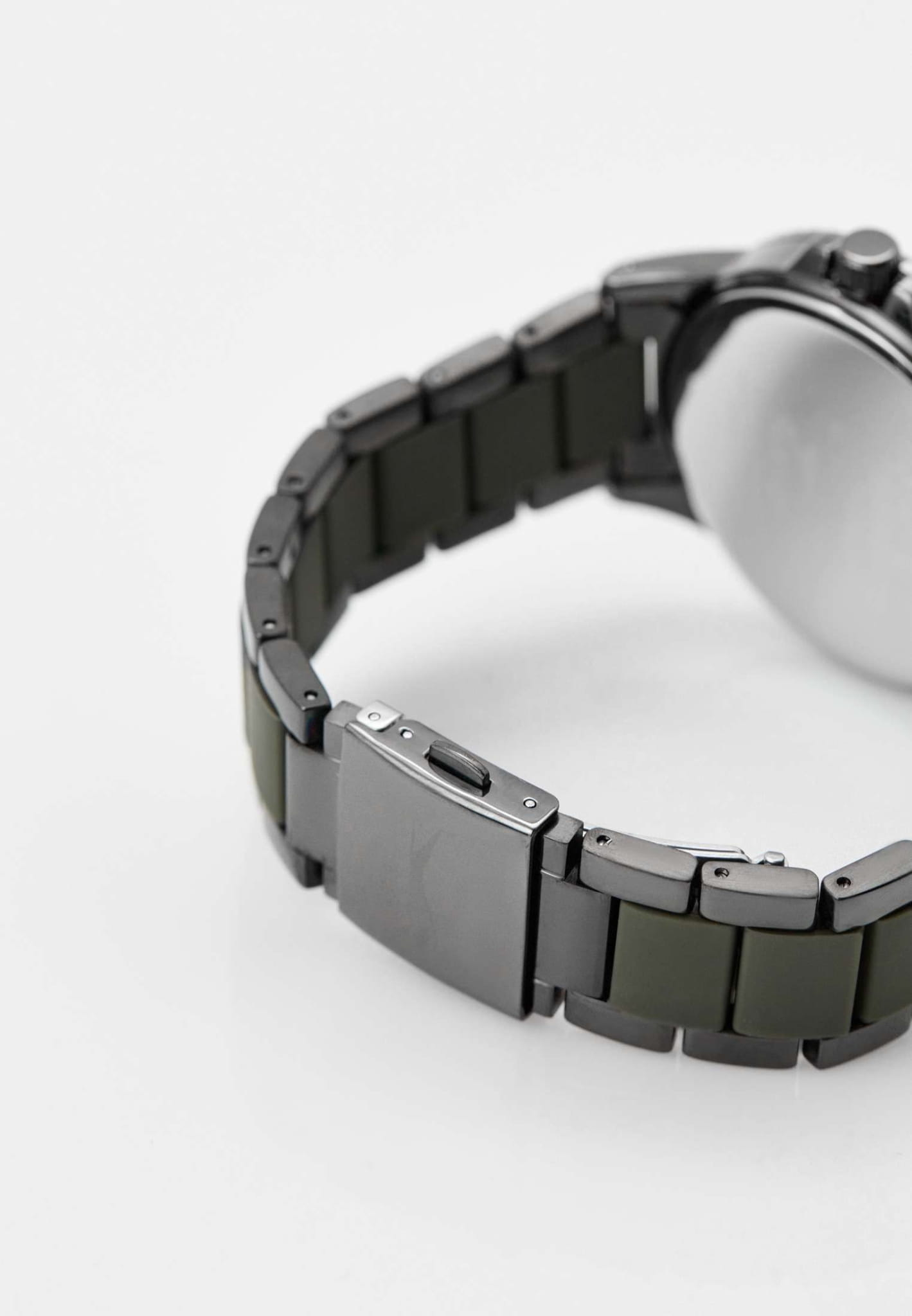 Часы Slazenger SL.09.2219.1.02 представляют собой стильное и функциональное аксессуарное решение для современных мужчин. Этот английский бренд предлагает кварцевый механизм, обеспечивающий точность хода и надежность в использовании. Корпус из металла с черным IP-покрытиемIP-покрытиеМетод ионного напыления. Демонстрирует повышенную устойчивость к истиранию, окислению и химическим веществам. Под воздействием высокого давления и температуры около 1500°C молекулы металла надёжно соединяются с частицами корпуса часов. и минеральное стеклоМинеральное стеклоМинеральное стекло представляет собой искусственно выращенный минерал кварца. Такое стекло отличается особой устойчивостью к повреждениям и царапинам. Уступает по некоторым качествам сапфировому стеклу. придают часам прочность и износостойкость, а водозащита уровня WR 30 позволяет не беспокоиться о случайных брызгах и дождевых каплях. БезельБезельВнешний ободок, закрепляющий стекло. В спортивных часах так называется поворотное кольцо с делениями на циферблате, выполняет роль таймера – замеряет отрезки времени на шкале. Неподвижный безель – элемент декора. Однонаправленно вращающийся безель на дайверских часах позволяет фиксировать моменты погружения и выныривания на поверхность. с черным IP-покрытиемIP-покрытиеМетод ионного напыления. Демонстрирует повышенную устойчивость к истиранию, окислению и химическим веществам. Под воздействием высокого давления и температуры около 1500°C молекулы металла надёжно соединяются с частицами корпуса часов. придаёт аксессуару современный вид и дополнительную прочность. Металлический браслет с черным IP-покрытиемIP-покрытиеМетод ионного напыления. Демонстрирует повышенную устойчивость к истиранию, окислению и химическим веществам. Под воздействием высокого давления и температуры около 1500°C молекулы металла надёжно соединяются с частицами корпуса часов., с комбинированными элементами и черными силиконовыми вставками обеспечивает комфортное ношение и надежную фиксацию на запястье, а раскладная застёжкаРаскладная застёжкаТакой тип застёжки используется только на браслетах из металла. Она никогда не раскрывается полностью, происходит разделение на 2 и более частей. Раскладывающая застёжка снизит вероятность потери часов к минимуму. облегчает процесс надевания. Диаметр корпуса составляет 45 мм, а толщина — 12 мм, что делает модель выразительной и заметной на руке, при этом она сохраняет элегантность и изысканность. На черном циферблате присутствует окошко даты, что добавляет практичности в повседневное использование. Заводная головка оснащена защитой, обеспечивая дополнительную долговечность. Вес часов составляет 148 грамм, что делает их достаточно легкими для комфортного ношения в течение всего дня.