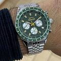 Часы Slazenger SL.09.2248.2.06 — это современная модель с выразительным спортивным характером, идеально подходящая для активного образа жизни. Корпус выполнен из прочного металла, зеленый циферблат защищён минеральным стекломМинеральное стеклоМинеральное стекло представляет собой искусственно выращенный минерал кварца. Такое стекло отличается особой устойчивостью к повреждениям и царапинам. Уступает по некоторым качествам сапфировому стеклу., устойчивым к царапинам. Часы также оснащены шкалой тахиметраТахиметрРазмеченная шкала, располагается на ободке или безеле часов. Тахиметр позволяет рассчитать скорость на определённом участке пути, расстояние измеряется в километрах или милях., что добавляет им функциональности и может быть полезно для измерения скорости. На безельБезельВнешний ободок, закрепляющий стекло. В спортивных часах так называется поворотное кольцо с делениями на циферблате, выполняет роль таймера – замеряет отрезки времени на шкале. Неподвижный безель – элемент декора. Однонаправленно вращающийся безель на дайверских часах позволяет фиксировать моменты погружения и выныривания на поверхность. нанесено зеленое IP-покрытиеIP-покрытиеМетод ионного напыления. Демонстрирует повышенную устойчивость к истиранию, окислению и химическим веществам. Под воздействием высокого давления и температуры около 1500°C молекулы металла надёжно соединяются с частицами корпуса часов.. Диаметр корпуса составляет 46 мм, толщина — 11 мм, а ширина браслета — 22 мм. Часы оснащены металлическим браслетом с надежной раскладной застёжкойРаскладная застёжкаТакой тип застёжки используется только на браслетах из металла. Она никогда не раскрывается полностью, происходит разделение на 2 и более частей. Раскладывающая застёжка снизит вероятность потери часов к минимуму., благодаря чему часы удобно сидят на руке и не вызывают дискомфорта даже при длительном ношении. Вес модели составляет 130 грамм. Надёжный кварцевый механизм обеспечивает точность времени, а уровень водозащиты WR 50 позволяет использовать часы в повседневных условиях, не опасаясь случайных брызг или дождя. Для удобства использования в темное время суток предусмотрено люминесцентное покрытиеЛюминесцентное покрытиеПозволяет считывать показания времени в темноте. Производители наносят на стрелки, часовые индексы, безель или поверхность циферблата светонакопительный состав, дающий холодное свечение. стрелок и меток. Дополнительные малые циферблаты показывают дату, день недели и текущее время в 24-часовом формате, что делает использование часов ещё более удобным и функциональным.