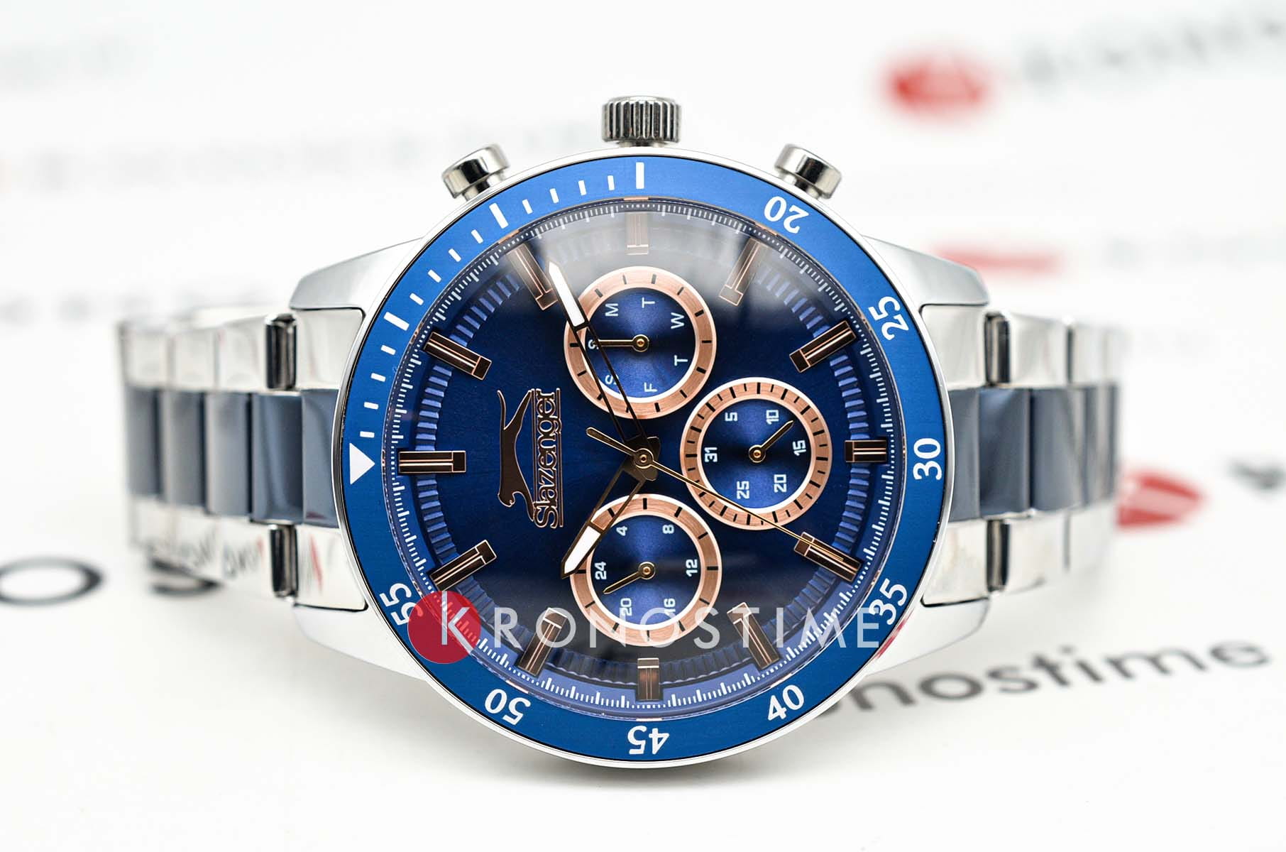 Часы Slazenger SL.09.2260.2.06 сочетают в себе выразительный дизайн и практичность, делая их отличным выбором для современного мужчины. Корпус и браслет выполнены из суперметалла — прочного сплава на основе меди с низким содержанием цинка и никеля, что обеспечивает долговечность изделия. На безельБезельВнешний ободок, закрепляющий стекло. В спортивных часах так называется поворотное кольцо с делениями на циферблате, выполняет роль таймера – замеряет отрезки времени на шкале. Неподвижный безель – элемент декора. Однонаправленно вращающийся безель на дайверских часах позволяет фиксировать моменты погружения и выныривания на поверхность. нанесено синее IP-покрытиеIP-покрытиеМетод ионного напыления. Демонстрирует повышенную устойчивость к истиранию, окислению и химическим веществам. Под воздействием высокого давления и температуры около 1500°C молекулы металла надёжно соединяются с частицами корпуса часов., что придает аксессуару утончённый и универсальный внешний вид. Модель оснащена точным кварцевым механизмом, защищённым минеральным стекломМинеральное стеклоМинеральное стекло представляет собой искусственно выращенный минерал кварца. Такое стекло отличается особой устойчивостью к повреждениям и царапинам. Уступает по некоторым качествам сапфировому стеклу.. На синем циферблате размещены дополнительные индикаторы: 24-часовой формат времени, дата и день недели. Класс водозащиты 5 бар позволяет не беспокоиться о брызгах и дожде. Диаметр корпуса составляет 45 мм, толщина — 12 мм, что придаёт часам солидный и современный вид. Стрелки с люминесцентным покрытиемЛюминесцентное покрытиеПозволяет считывать показания времени в темноте. Производители наносят на стрелки, часовые индексы, безель или поверхность циферблата светонакопительный состав, дающий холодное свечение. удобно подсвечиваются в темноте после зарядки на свету. Стальной браслет с синим IP-покрытиемIP-покрытиеМетод ионного напыления. Демонстрирует повышенную устойчивость к истиранию, окислению и химическим веществам. Под воздействием высокого давления и температуры около 1500°C молекулы металла надёжно соединяются с частицами корпуса часов. с раскладной застёжкойРаскладная застёжкаТакой тип застёжки используется только на браслетах из металла. Она никогда не раскрывается полностью, происходит разделение на 2 и более частей. Раскладывающая застёжка снизит вероятность потери часов к минимуму. обеспечивает комфортную посадку. Модель станет надёжным спутником как на каждый день, так и для особых случаев, а также превосходно подойдёт в качестве подарка. Гарантия от производителя — 12 месяцев.