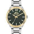 Женские кварцевые часы Slazenger SL.09.2304.3.02 — это элегантный и стильный аксессуар, идеально дополняющий любой образ. Безель из суперметалла с IP-покрытиемIP-покрытиеМетод ионного напыления. Демонстрирует повышенную устойчивость к истиранию, окислению и химическим веществам. Под воздействием высокого давления и температуры около 1500°C молекулы металла надёжно соединяются с частицами корпуса часов., защищён минеральным стекломМинеральное стеклоМинеральное стекло представляет собой искусственно выращенный минерал кварца. Такое стекло отличается особой устойчивостью к повреждениям и царапинам. Уступает по некоторым качествам сапфировому стеклу.. Циферблат зелёного цвета оформлен в классическом стиле, стрелки оснащены люминесцентным покрытиемЛюминесцентное покрытиеПозволяет считывать показания времени в темноте. Производители наносят на стрелки, часовые индексы, безель или поверхность циферблата светонакопительный состав, дающий холодное свечение., обеспечивающим хорошую читаемость в темноте. Браслет из суперметалла фиксируется на раскладной застёжкеРаскладная застёжкаТакой тип застёжки используется только на браслетах из металла. Она никогда не раскрывается полностью, происходит разделение на 2 и более частей. Раскладывающая застёжка снизит вероятность потери часов к минимуму., обеспечивая надёжность и комфорт ношения. Водонепроницаемость 30 м позволяет использовать часы в повседневных условиях, защищая от случайных брызг и капель дождя. Модель сочетает в себе лёгкость, прочность и изысканный внешний вид.