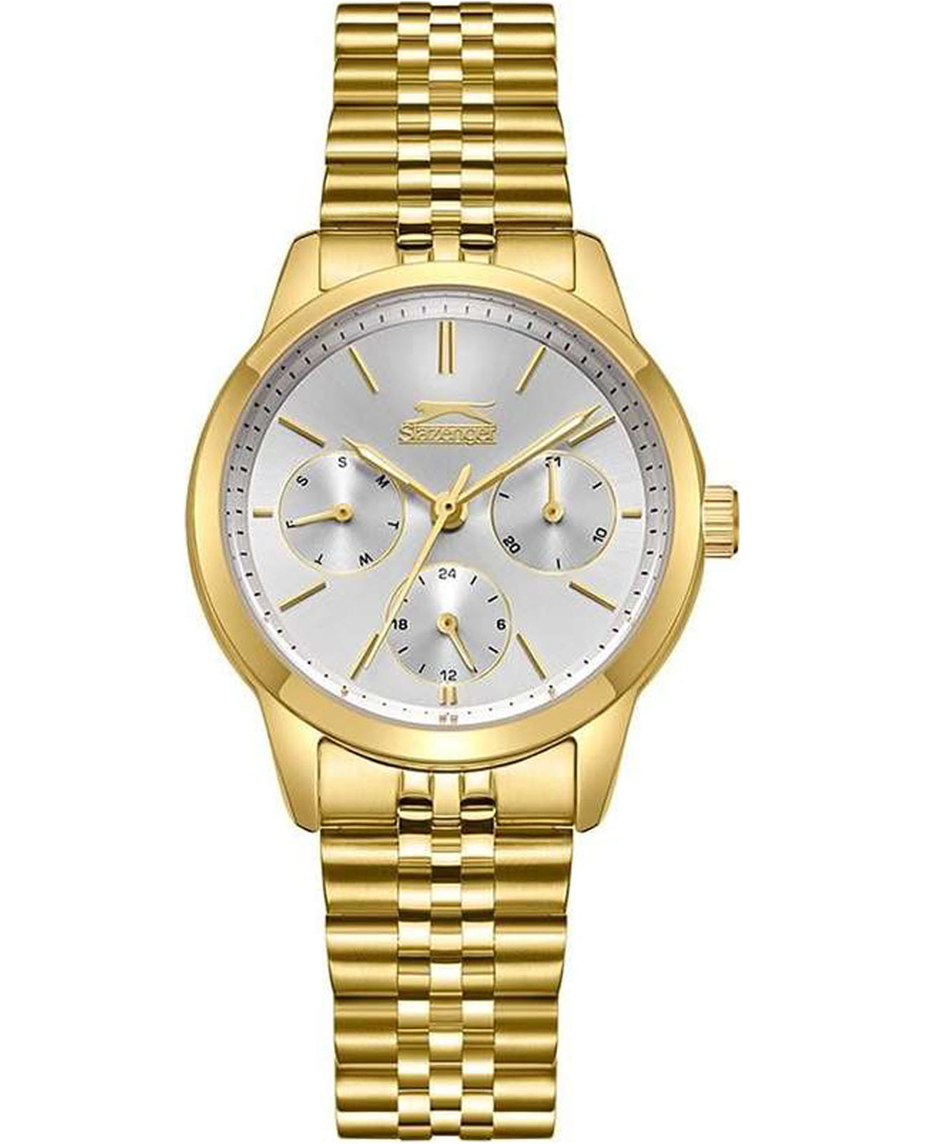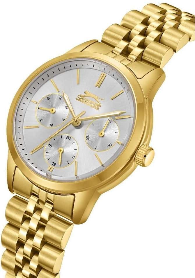 Женские элегантные наручные часы Slazenger SL.09.2336.4.06 сочетают в себе современный стиль и функциональность. Корпус выполнен из суперметалла с IP-покрытиемIP-покрытиеМетод ионного напыления. Демонстрирует повышенную устойчивость к истиранию, окислению и химическим веществам. Под воздействием высокого давления и температуры около 1500°C молекулы металла надёжно соединяются с частицами корпуса часов., придающий модели дополнительную прочность и элегантный внешний вид. Изысканный циферблат защищён минеральным стекломМинеральное стеклоМинеральное стекло представляет собой искусственно выращенный минерал кварца. Такое стекло отличается особой устойчивостью к повреждениям и царапинам. Уступает по некоторым качествам сапфировому стеклу., устойчивым к царапинам и повреждениям. Часы оснащены дополнительными циферблатами, отображающими дату, день недели и 24-часовой формат времени, что добавляет практичности в повседневном использовании. Водонепроницаемость 3 АТМ позволяет использовать часы в повседневных условиях — при мытье рук или под лёгким дождём. Браслет из суперметалла с IP-покрытиемIP-покрытиеМетод ионного напыления. Демонстрирует повышенную устойчивость к истиранию, окислению и химическим веществам. Под воздействием высокого давления и температуры около 1500°C молекулы металла надёжно соединяются с частицами корпуса часов. и с раскладной застёжкойРаскладная застёжкаТакой тип застёжки используется только на браслетах из металла. Она никогда не раскрывается полностью, происходит разделение на 2 и более частей. Раскладывающая застёжка снизит вероятность потери часов к минимуму. обеспечивает надёжную фиксацию и комфорт при ношении. Эта модель идеально подходит для женщин, ценящих стиль, функциональность и надёжность в одном аксессуаре.