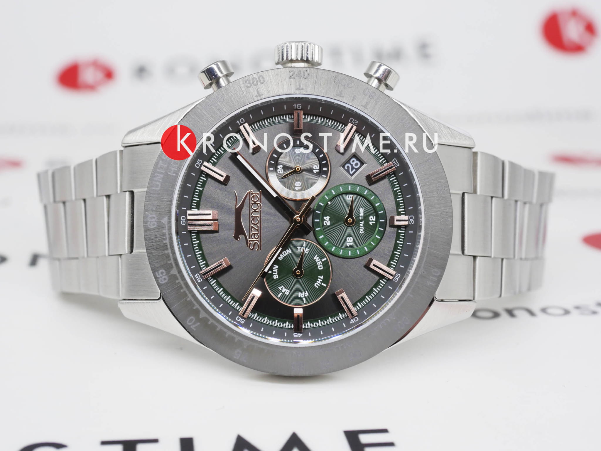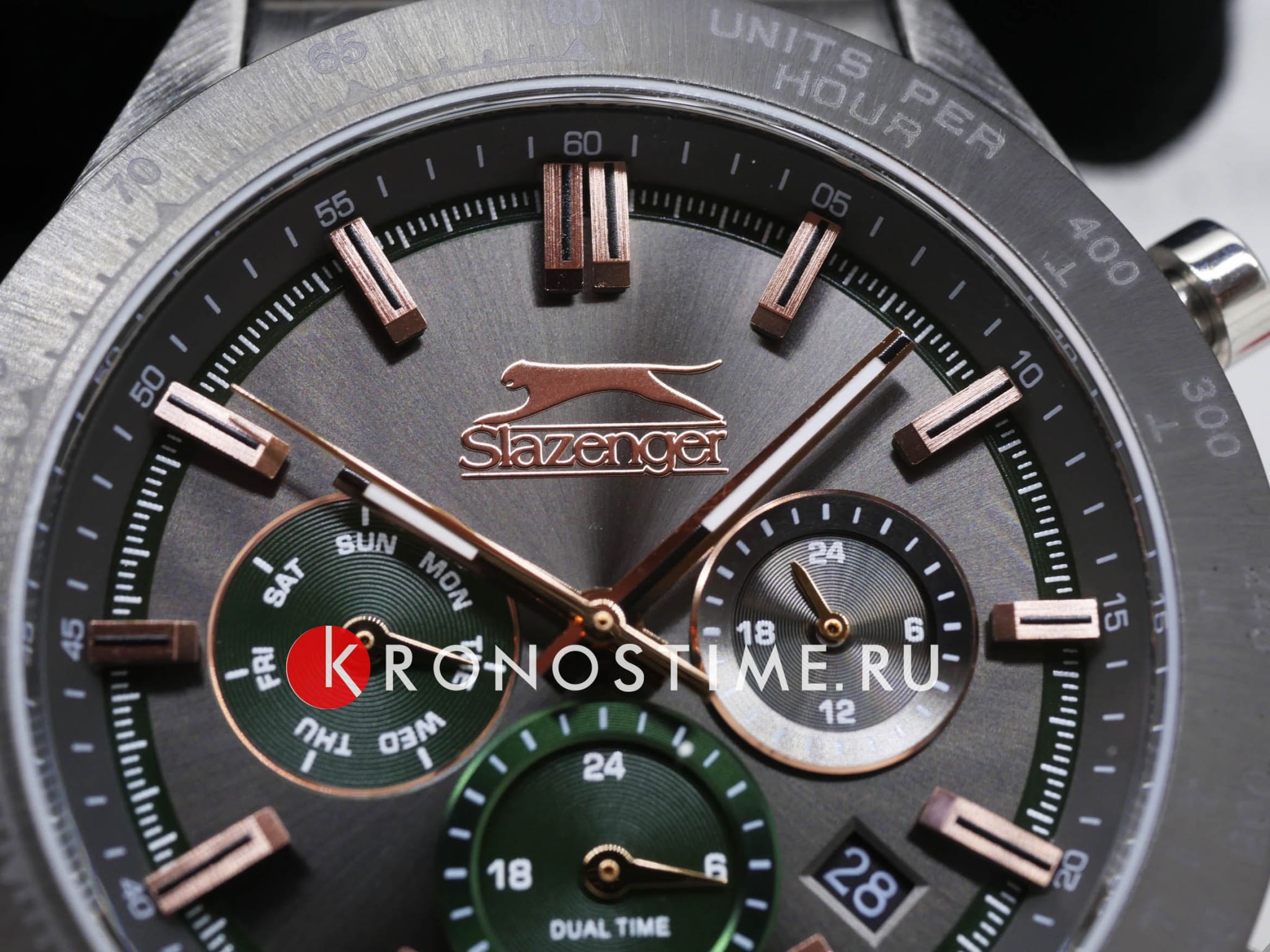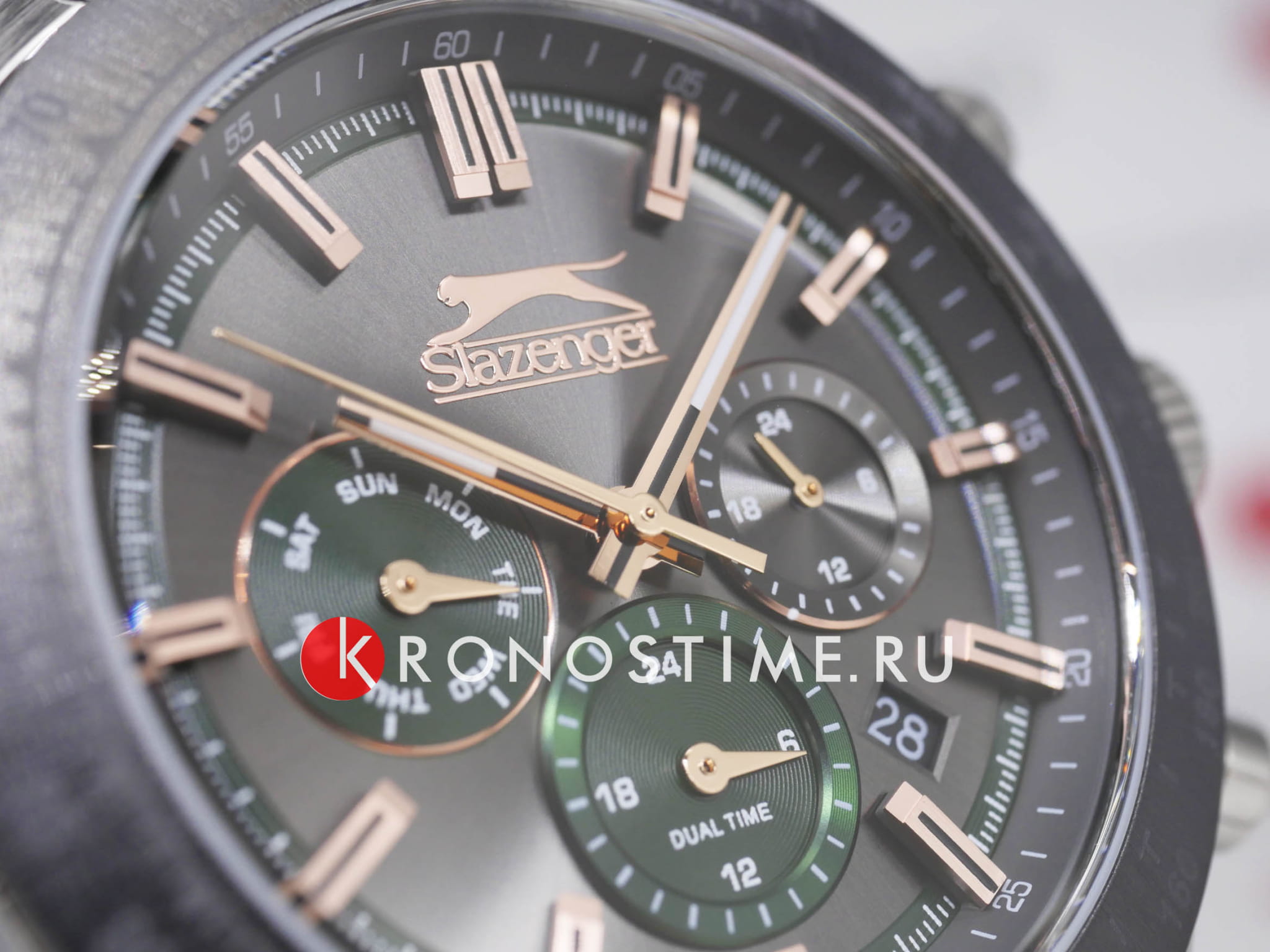 Slazenger SL.09.2358.2.02 — стильные мужские часы, сочетающие современный дизайн и функциональность. Корпус выполнен из суперметалла, а безельБезельВнешний ободок, закрепляющий стекло. В спортивных часах так называется поворотное кольцо с делениями на циферблате, выполняет роль таймера – замеряет отрезки времени на шкале. Неподвижный безель – элемент декора. Однонаправленно вращающийся безель на дайверских часах позволяет фиксировать моменты погружения и выныривания на поверхность. покрыт PVDPVDУльтратонкое покрытие наносится в технике вакуумного напыления, сочетает в себе нитрид титана особой прочности со слоем золота или оксида хрома. Несёт в себе декоративную или защитную функцию.-покрытием чёрного цвета, придающим модели современный и элегантный вид. Минеральное стеклоМинеральное стеклоМинеральное стекло представляет собой искусственно выращенный минерал кварца. Такое стекло отличается особой устойчивостью к повреждениям и царапинам. Уступает по некоторым качествам сапфировому стеклу. защищает циферблат от царапин и гарантирует превосходную читаемость. Чёрный циферблат с контрастными метками и стрелками обеспечивает отличную видимость в любых условиях. Браслет из суперметалла обеспечивает комфортное ношение и надёжную фиксацию на запястье. Функциональность дополняется индикацией даты, дня недели и 24-часовым форматом времени. Водонепроницаемость 50 метров делает модель устойчивой к случайным брызгам, идеально подходя для повседневного использования.