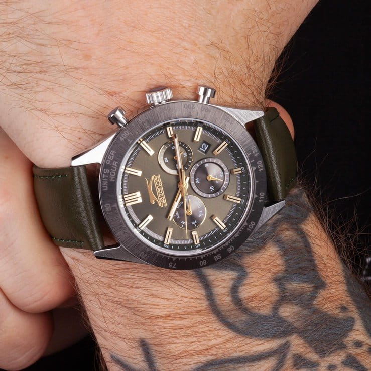 Мужские кварцевые часы Slazenger SL.09.2359.2.02 – идеальное сочетание классического дизайна и современных технологий, созданное для уверенных в себе мужчин. Корпус выполнен из суперметалла серебристого цвета, диаметром 43 мм и толщиной 11 мм, подчёркивает надежность модели и делает их идеальным аксессуаром для любой ситуации – будь то деловая встреча или повседневные выходы. Циферблат надёжно защищён минеральным стекломМинеральное стеклоМинеральное стекло представляет собой искусственно выращенный минерал кварца. Такое стекло отличается особой устойчивостью к повреждениям и царапинам. Уступает по некоторым качествам сапфировому стеклу., которое устойчиво к механическим повреждениям и сохраняет кристальную прозрачность. Неподвижный безельБезельВнешний ободок, закрепляющий стекло. В спортивных часах так называется поворотное кольцо с делениями на циферблате, выполняет роль таймера – замеряет отрезки времени на шкале. Неподвижный безель – элемент декора. Однонаправленно вращающийся безель на дайверских часах позволяет фиксировать моменты погружения и выныривания на поверхность. с IP-покрытиемIP-покрытиеМетод ионного напыления. Демонстрирует повышенную устойчивость к истиранию, окислению и химическим веществам. Под воздействием высокого давления и температуры около 1500°C молекулы металла надёжно соединяются с частицами корпуса часов.. Кожаный ремешок на стандартной застёжке удобно облегает запястье, обеспечивая надёжность и комфорт в повседневном ношении. Стрелки покрыты люминесцентным покрытиемЛюминесцентное покрытиеПозволяет считывать показания времени в темноте. Производители наносят на стрелки, часовые индексы, безель или поверхность циферблата светонакопительный состав, дающий холодное свечение., обеспечивающим отличную читаемость в темноте. Эти часы станут не просто аксессуаром, а надежным спутником в любой ситуации, подчеркивая ваш безупречный вкус и деловой стиль. Вынесенный циферблат с 24-х часовым указателем времени и функция тахиметраТахиметрРазмеченная шкала, располагается на ободке или безеле часов. Тахиметр позволяет рассчитать скорость на определённом участке пути, расстояние измеряется в километрах или милях.. Водозащита 50 метров позволит защитить корпус от случайных брызг или капель дождя.