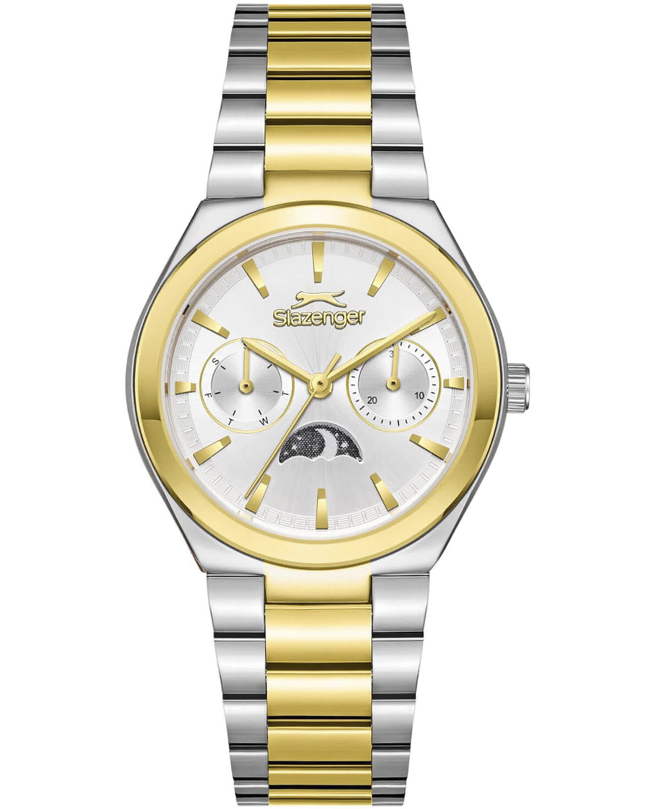 Женские кварцевые часы Slazenger — это выразительный и функциональный аксессуар. Корпус диаметром 34 мм и толщиной 9,5 мм выполнен из суперметалла. БезельБезельВнешний ободок, закрепляющий стекло. В спортивных часах так называется поворотное кольцо с делениями на циферблате, выполняет роль таймера – замеряет отрезки времени на шкале. Неподвижный безель – элемент декора. Однонаправленно вращающийся безель на дайверских часах позволяет фиксировать моменты погружения и выныривания на поверхность. из суперметалла с IP-покрытиемIP-покрытиеМетод ионного напыления. Демонстрирует повышенную устойчивость к истиранию, окислению и химическим веществам. Под воздействием высокого давления и температуры около 1500°C молекулы металла надёжно соединяются с частицами корпуса часов... Циферблат серебристого цвета оформлен индексами и стрелками. Циферблат защищён минеральным стекломМинеральное стеклоМинеральное стекло представляет собой искусственно выращенный минерал кварца. Такое стекло отличается особой устойчивостью к повреждениям и царапинам. Уступает по некоторым качествам сапфировому стеклу.. Механизм — кварцевый калибр VX3HE11. Часы оснащены индикацией дня недели, даты и индикатором день/ночь, отображающим солнце или луну в зависимости от времени суток. Часы оснащены браслетом из суперметалла с IP-покрытиемIP-покрытиеМетод ионного напыления. Демонстрирует повышенную устойчивость к истиранию, окислению и химическим веществам. Под воздействием высокого давления и температуры около 1500°C молекулы металла надёжно соединяются с частицами корпуса часов. и раскладной застёжкойРаскладная застёжкаТакой тип застёжки используется только на браслетах из металла. Она никогда не раскрывается полностью, происходит разделение на 2 и более частей. Раскладывающая застёжка снизит вероятность потери часов к минимуму.. Водонепроницаемость 50 м позволяет использовать часы в повседневных условиях. Гарантия — 12 месяцев. Идеальный выбор для тех, кто ценит стиль, функциональность и качество.