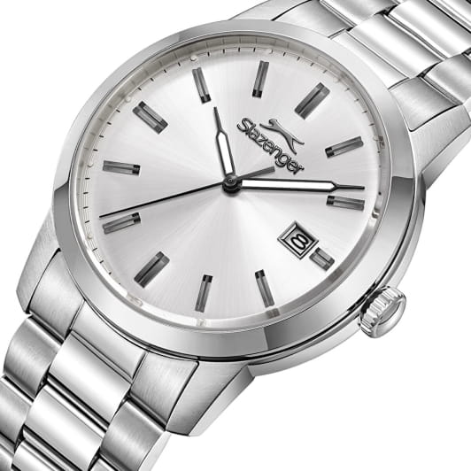 Мужские кварцевые часы Slazenger — это выразительный и функциональный аксессуар. Корпус диаметром 42 мм и толщиной 12 мм выполнен из нержавеющей стали 316L. Циферблат белого цвета оформлен индексами и стрелками. Циферблат защищён минеральным стекломМинеральное стеклоМинеральное стекло представляет собой искусственно выращенный минерал кварца. Такое стекло отличается особой устойчивостью к повреждениям и царапинам. Уступает по некоторым качествам сапфировому стеклу.. Механизм — кварцевый. Окошко даты расположено в положении 3 часов. Стрелки и метки с люминесцентным покрытиемЛюминесцентное покрытиеПозволяет считывать показания времени в темноте. Производители наносят на стрелки, часовые индексы, безель или поверхность циферблата светонакопительный состав, дающий холодное свечение., обеспечивающим хорошую читаемость в темноте. Часы оснащены стальным браслетом на застёжке «бабочка» с кнопкамиЗастёжка "бабочка"Такой вид застёжки дополняется предохранителями, помогающими избежать случайного раскрытия браслета. Обладают изящным исполнением. . Водонепроницаемость 100 м позволяет использовать часы для плавания и повседневного ношения. Гарантия — 12 месяцев. Идеальный выбор для тех, кто ценит стиль, функциональность и качество.