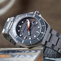 Мужские итальянские механические часы с автоподзаводом Spinnaker Dumas SP-5081-KK, механический механизм (автоматический калибр) с высокой точностью. Циферблат с люминесцентным покрытиемЛюминесцентное покрытиеПозволяет считывать показания времени в темноте. Производители наносят на стрелки, часовые индексы, безель или поверхность циферблата светонакопительный состав, дающий холодное свечение. стрелок, меток и безеляБезельВнешний ободок, закрепляющий стекло. В спортивных часах так называется поворотное кольцо с делениями на циферблате, выполняет роль таймера – замеряет отрезки времени на шкале. Неподвижный безель – элемент декора. Однонаправленно вращающийся безель на дайверских часах позволяет фиксировать моменты погружения и выныривания на поверхность. дополнен сапфировым стекломСапфировое стеклоПрочный и надёжный материал из кристалла сапфира синтетического происхождения, характеризующийся особой твёрдостью и устойчивостью к царапинам и повреждениям. с антибликовым покрытием, устойчивым к появлению царапин и обладающее высокой прозрачностью. Класс водозащиты: 300 метров (погружение с аквалангом). Корпус часов изготовлен из нержавеющей стали 316L. Благодаря обновленному безелюБезельВнешний ободок, закрепляющий стекло. В спортивных часах так называется поворотное кольцо с делениями на циферблате, выполняет роль таймера – замеряет отрезки времени на шкале. Неподвижный безель – элемент декора. Однонаправленно вращающийся безель на дайверских часах позволяет фиксировать моменты погружения и выныривания на поверхность. с IP-покрытиемIP-покрытиеМетод ионного напыления. Демонстрирует повышенную устойчивость к истиранию, окислению и химическим веществам. Под воздействием высокого давления и температуры около 1500°C молекулы металла надёжно соединяются с частицами корпуса часов. с более техническим изгибом, мастерство и точность изготовления часов Spinnaker Watches демонстрируются в безелеБезельВнешний ободок, закрепляющий стекло. В спортивных часах так называется поворотное кольцо с делениями на циферблате, выполняет роль таймера – замеряет отрезки времени на шкале. Неподвижный безель – элемент декора. Однонаправленно вращающийся безель на дайверских часах позволяет фиксировать моменты погружения и выныривания на поверхность. из закаленного стекла. Стальной браслет на раскладной застёжкеРаскладная застёжкаТакой тип застёжки используется только на браслетах из металла. Она никогда не раскрывается полностью, происходит разделение на 2 и более частей. Раскладывающая застёжка снизит вероятность потери часов к минимуму..
