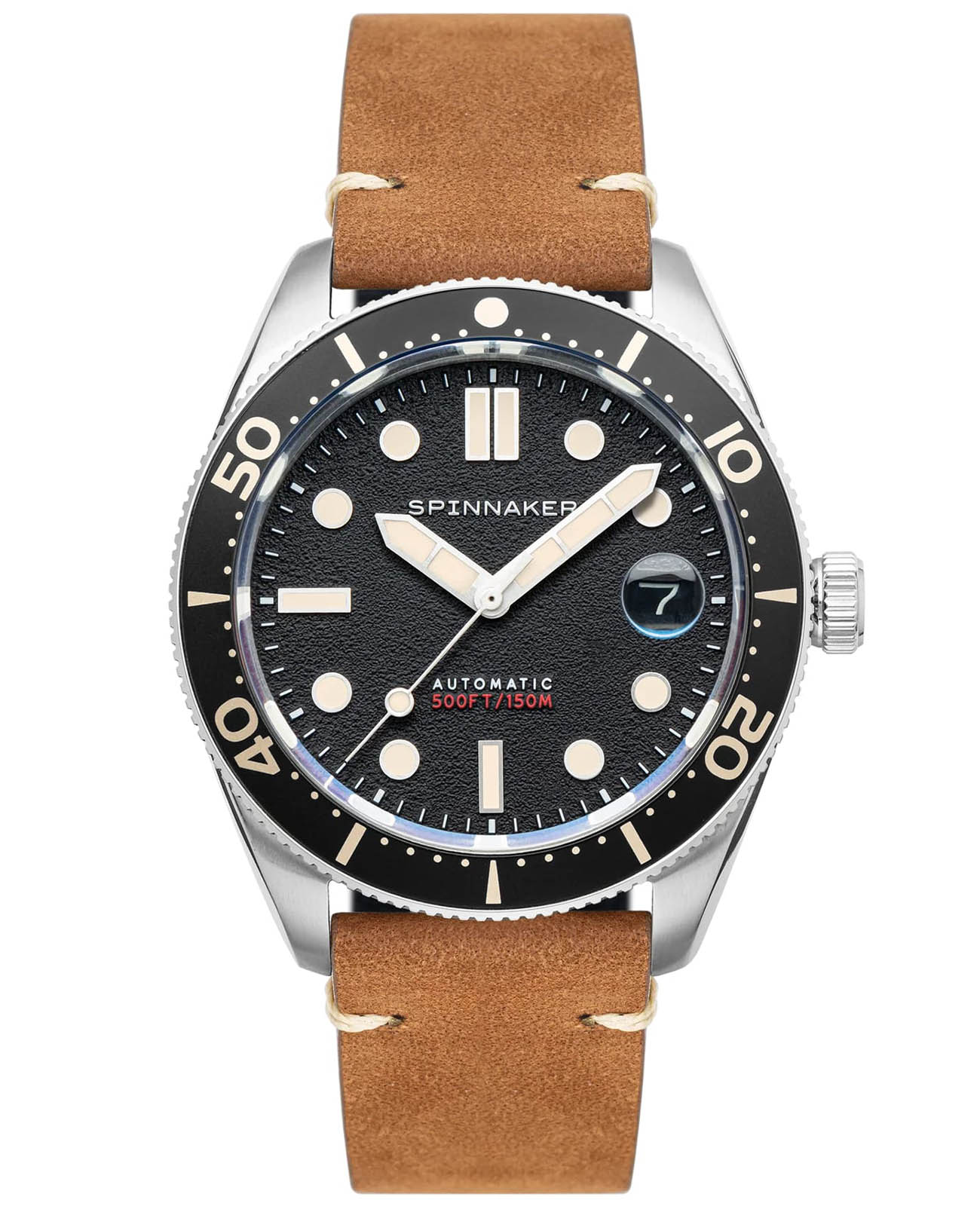 Мужские итальянские часы Spinnaker Croft SP-5100-01, механический механизм (автоматический калибр) с высокой точностью. Циферблат с люминесцентным покрытиемЛюминесцентное покрытиеПозволяет считывать показания времени в темноте. Производители наносят на стрелки, часовые индексы, безель или поверхность циферблата светонакопительный состав, дающий холодное свечение. стрелок и меток, дополнен сапфировым стекломСапфировое стеклоПрочный и надёжный материал из кристалла сапфира синтетического происхождения, характеризующийся особой твёрдостью и устойчивостью к царапинам и повреждениям., устойчивым к появлению царапин и обладающее высокой прозрачностью. Класс водозащиты: 150 метров, позволит плавать, нырять и заниматься другими водными видами спорта. Корпус часов изготовлен из усовершенствованной стали 316L. Апертура даты с увеличительным стеклом в позиции 3 часов. Коричневый кожаный ремешок толщиной 20 мм, стандартная застежка. Вращающийся стальной безельБезельВнешний ободок, закрепляющий стекло. В спортивных часах так называется поворотное кольцо с делениями на циферблате, выполняет роль таймера – замеряет отрезки времени на шкале. Неподвижный безель – элемент декора. Однонаправленно вращающийся безель на дайверских часах позволяет фиксировать моменты погружения и выныривания на поверхность. с PVD-покрытиемPVDУльтратонкое покрытие наносится в технике вакуумного напыления, сочетает в себе нитрид титана особой прочности со слоем золота или оксида хрома. Несёт в себе декоративную или защитную функцию..
