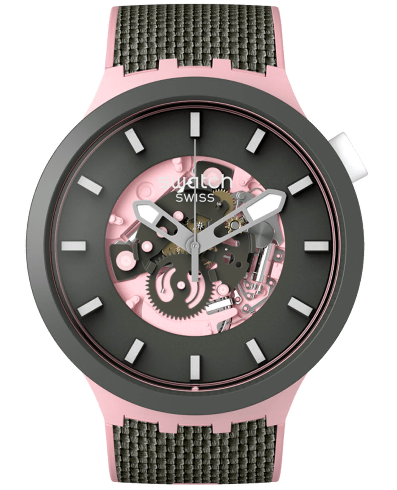 Часы Swatch SB05P100 — это стильный и современный аксессуар для тех, кто ценит лёгкость и комфорт. Часы идеально подойдут как для мужчин, так и для женщин. Эти большие часы пастельно-розового цвета с темно-серым циферблатом с вырезами и светящимся в темноте светло-серым принтом, благодаря люминесцентному покрытиюЛюминесцентное покрытиеПозволяет считывать показания времени в темноте. Производители наносят на стрелки, часовые индексы, безель или поверхность циферблата светонакопительный состав, дающий холодное свечение.. Корпус и безельБезельВнешний ободок, закрепляющий стекло. В спортивных часах так называется поворотное кольцо с делениями на циферблате, выполняет роль таймера – замеряет отрезки времени на шкале. Неподвижный безель – элемент декора. Однонаправленно вращающийся безель на дайверских часах позволяет фиксировать моменты погружения и выныривания на поверхность. сделаны из биоматериала. Силиконовый ремешок, отделанный темно-серым текстилем, выполнен в однотонном матово-розовом цвете. Стекло и корпус этих часов с большим циферблатом изготовлены из биоматериала. Водозащита 30 метров делает часы практичными для повседневного использования. Эти часы подойдут для повседневного ношения и станут ярким акцентом в вашем наряде.