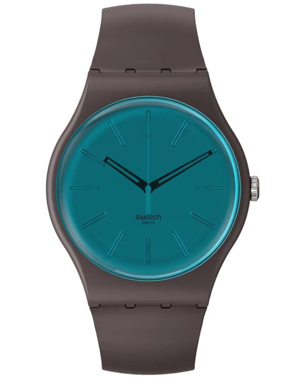 Часы Swatch SO29C100 —  стильный и надежный аксессуар. Современный взгляд на классику. Эти часы имеют коричневый корпус и ремешок из биоматериала, голубой циферблат покрыт прозрачным голубым биостеклом. Мерцающий блеск модели обусловлен особым методом гравированной отделки. Внутри часов установлен надежный кварцевый механизм, который обеспечивает точность хода. Эти часы водонепроницаемы до 30 метров, что позволяет не беспокоиться о случайных брызгах или дождевых каплях. Swatch SO29C100 — это идеальный выбор для тех, кто ценит сочетание стиля, комфорта и функциональности в одном аксессуаре.