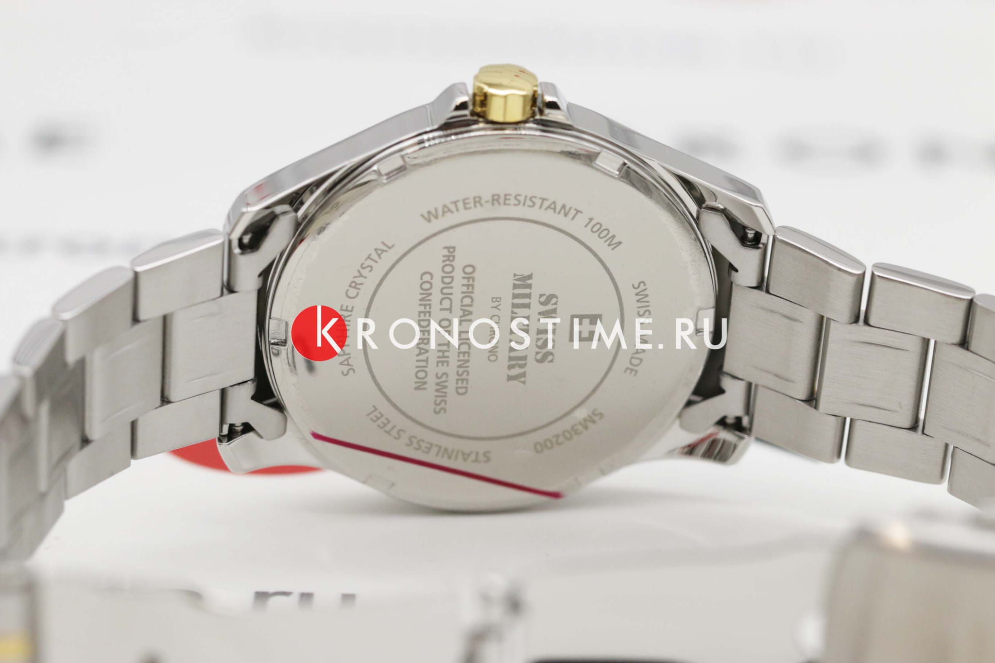 Мужские швейцарские часы Swiss Military by Chrono SM30200.32, кварцевый механизм с высокой точностью. Cапфировое стеклоСапфировое стеклоПрочный и надёжный материал из кристалла сапфира синтетического происхождения, характеризующийся особой твёрдостью и устойчивостью к царапинам и повреждениям. устойчивое к появлению царапин и обладающее высокой прозрачностью. Секундная стрелка вынесена на отдельный циферблат. Окошко даты находится в положении 3 часов. Неподвижный безельБезельВнешний ободок, закрепляющий стекло. В спортивных часах так называется поворотное кольцо с делениями на циферблате, выполняет роль таймера – замеряет отрезки времени на шкале. Неподвижный безель – элемент декора. Однонаправленно вращающийся безель на дайверских часах позволяет фиксировать моменты погружения и выныривания на поверхность. из нержавеющей стали с PVDPVDУльтратонкое покрытие наносится в технике вакуумного напыления, сочетает в себе нитрид титана особой прочности со слоем золота или оксида хрома. Несёт в себе декоративную или защитную функцию. покрытием. Стрелки с люминесцентным покрытиемЛюминесцентное покрытиеПозволяет считывать показания времени в темноте. Производители наносят на стрелки, часовые индексы, безель или поверхность циферблата светонакопительный состав, дающий холодное свечение.. Класс водозащиты: 100 метров, позволит плавать, нырять и заниматься другими водными видами спорта. Корпус и браслет часов изготовлен из нержавеющей стали с частичным PVDPVDУльтратонкое покрытие наносится в технике вакуумного напыления, сочетает в себе нитрид титана особой прочности со слоем золота или оксида хрома. Несёт в себе декоративную или защитную функцию. покрытием. Стальной браслет на раскладной застёжкеРаскладная застёжкаТакой тип застёжки используется только на браслетах из металла. Она никогда не раскрывается полностью, происходит разделение на 2 и более частей. Раскладывающая застёжка снизит вероятность потери часов к минимуму..