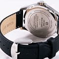 Внутри модели установлен надёжный швейцарский кварцевый механизм ETA F06.411, известный своей точностью и долговечностью. Чёрный ремешок из натуральной кожи с классической застёжкой добавляет аксессуару стильный акцент и обеспечивает комфортное ношение.