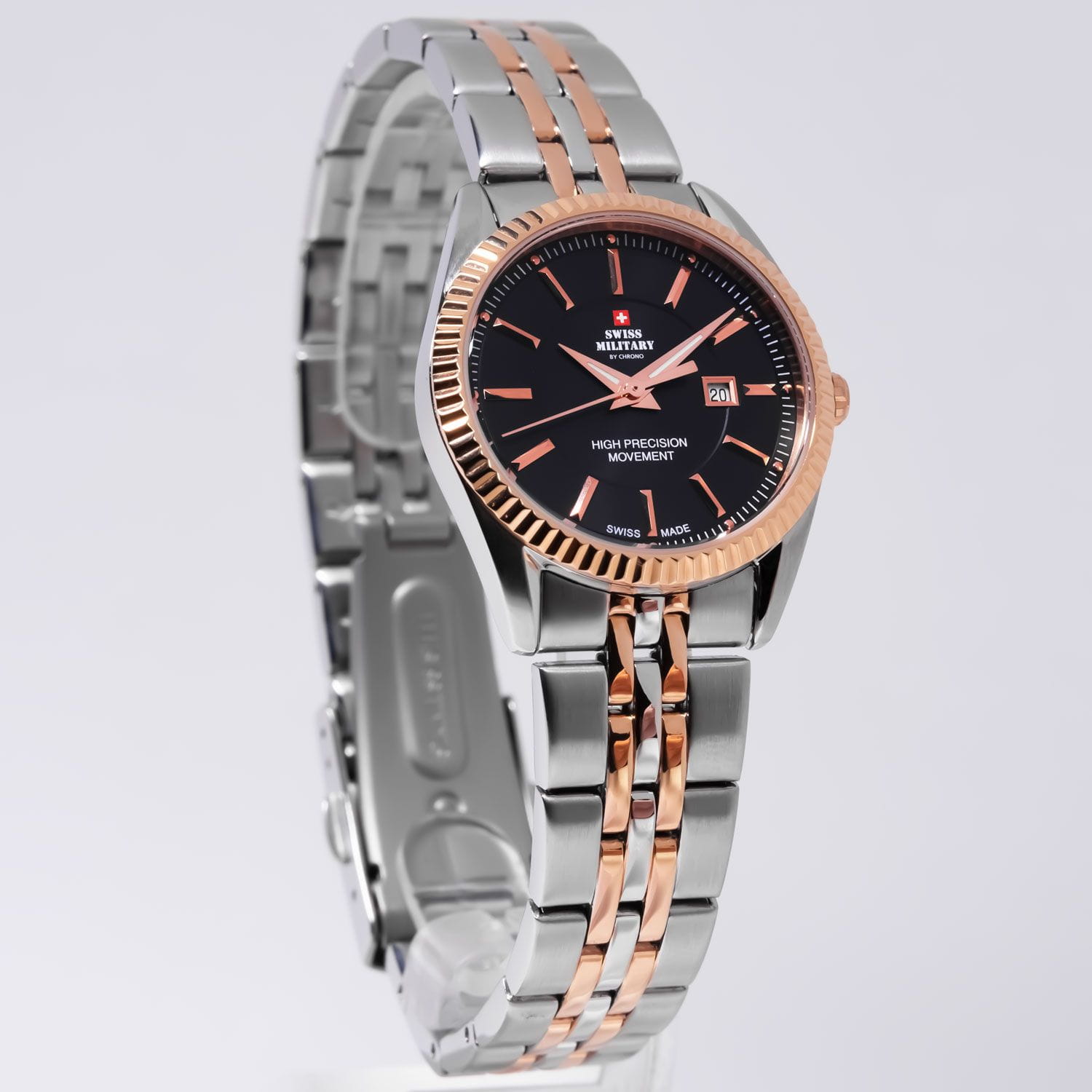 Женские швейцарские наручные часы Swiss Military by Chrono SM34066.06, кварцевый механизм с высокой точностью. Минеральное стекло устойчивое к появлению царапин, обладающее высокой прозрачностью. Класс водозащиты: 50 метров, позволит защитить корпус от случайных брызг или капель дождя. Корпус часов изготовлен из стали с частичным IP-покрытиемIP-покрытиеМетод ионного напыления. Демонстрирует повышенную устойчивость к истиранию, окислению и химическим веществам. Под воздействием высокого давления и температуры около 1500°C молекулы металла надёжно соединяются с частицами корпуса часов. . Раскладная застёжкаРаскладная застёжкаТакой тип застёжки используется только на браслетах из металла. Она никогда не раскрывается полностью, происходит разделение на 2 и более частей. Раскладывающая застёжка снизит вероятность потери часов к минимуму..