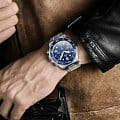 Стрелки и часовые метки покрыты люминесцентным составомЛюминесцентное покрытиеПозволяет считывать показания времени в темноте. Производители наносят на стрелки, часовые индексы, безель или поверхность циферблата светонакопительный состав, дающий холодное свечение., что позволяет удобно считывать время даже в темноте. Модель оснащена швейцарским кварцевым механизмом с функцией хронографа, а также имеет окошки даты и дня недели, что добавляет практичности.