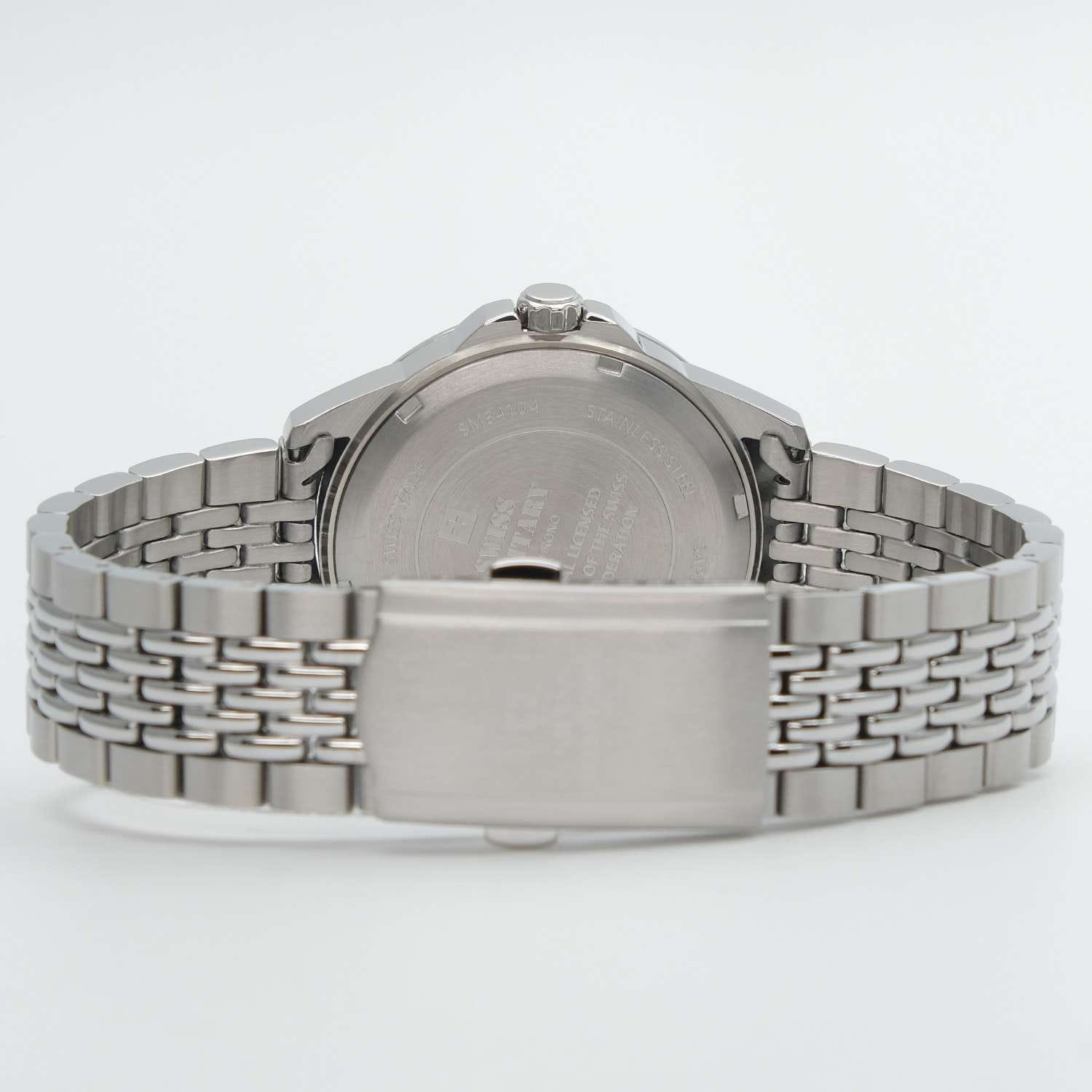 Часы Swiss Military by Chrono Classic SM34104.02 — это элегантный мужской аксессуар, сочетающий швейцарское качество и классический дизайн. Корпус диаметром 40 мм и браслет выполнены из нержавеющей стали, придающим изделию изысканный вид. Циферблат с часовыми индексами в виде штрихов и стрелками, защищёнными прочным сапфировым стекломСапфировое стеклоПрочный и надёжный материал из кристалла сапфира синтетического происхождения, характеризующийся особой твёрдостью и устойчивостью к царапинам и повреждениям., устойчивым к царапинам. Стрелки и часовые метки покрыты люминесцентным составомЛюминесцентное покрытиеПозволяет считывать показания времени в темноте. Производители наносят на стрелки, часовые индексы, безель или поверхность циферблата светонакопительный состав, дающий холодное свечение., обеспечивая отличную читаемость в условиях низкой освещённости. Модель оснащена швейцарским кварцевым механизмом, гарантирующим высокую точность хода. Окно даты расположено на позиции 3 часов, добавляя практичности в повседневном использовании. Браслет из нержавеющей стали с раскладной застёжкойРаскладная застёжкаТакой тип застёжки используется только на браслетах из металла. Она никогда не раскрывается полностью, происходит разделение на 2 и более частей. Раскладывающая застёжка снизит вероятность потери часов к минимуму. обеспечивает комфортное ношение и надёжную фиксацию на запястье. Водонепроницаемость до 10 ATM позволяет использовать часы при плавании и других водных активностях. Swiss Military — это идеальный выбор для мужчин, ценящих сочетание элегантности, функциональности и швейцарского качества.