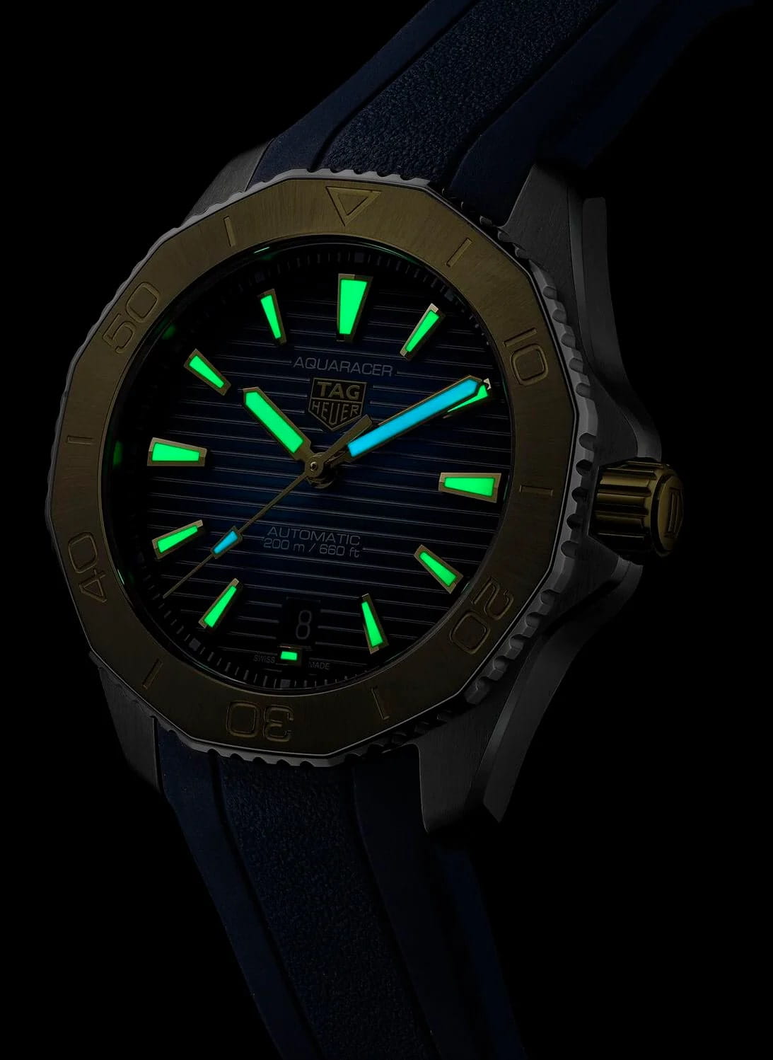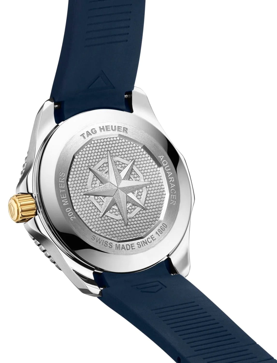 Часы TAG Heuer Aquaracer Professional 200 WBP2150.FT6210. Сочетая в себе прочность желтого золота и универсальность синего каучукового ремешка, этот роскошный TAG Heuer Aquaracer отличается спортивной элегантностью. Очень разборчивые благодаря светящимся позолоченным стрелкам и индексам, великолепно контрастирующим с темно-синим циферблатом, эти эффектные часы готовы к крайностям.