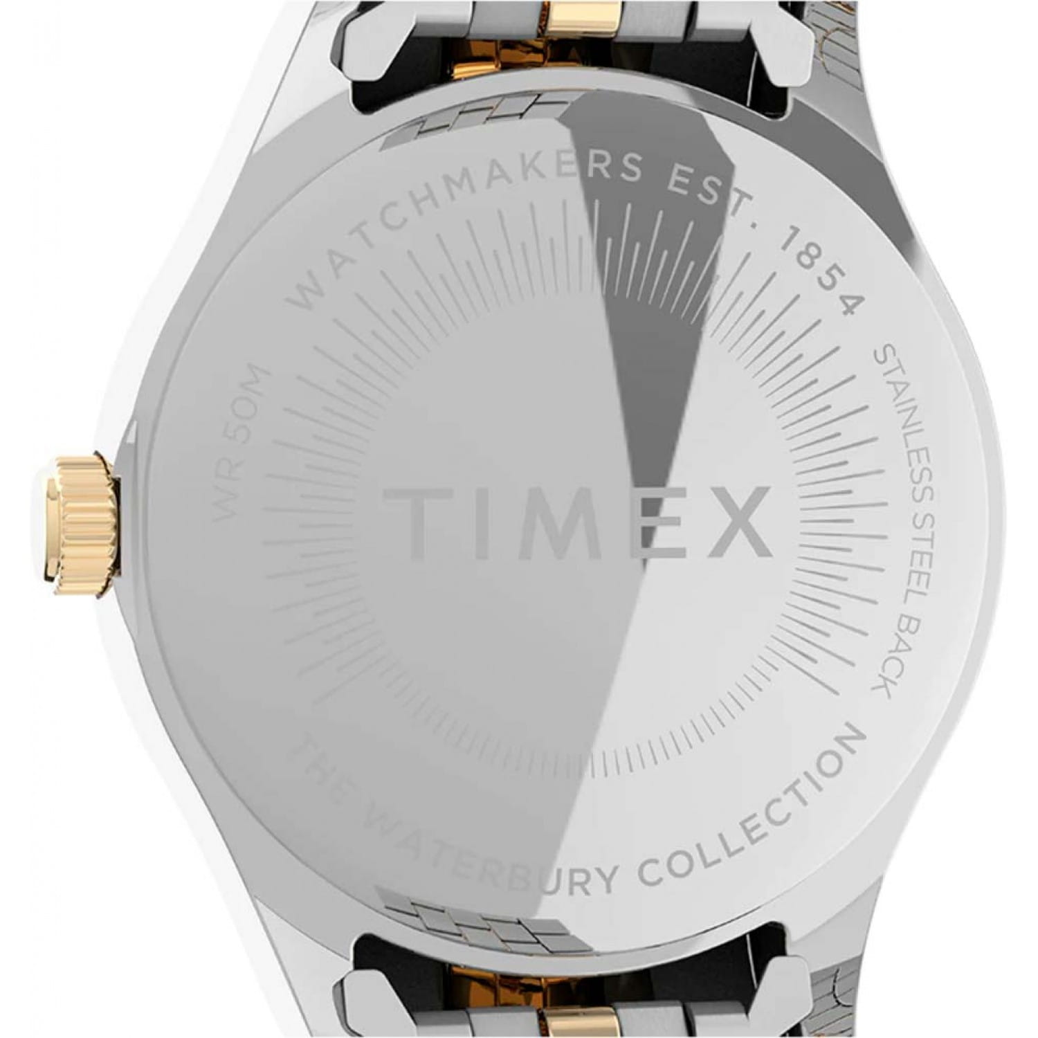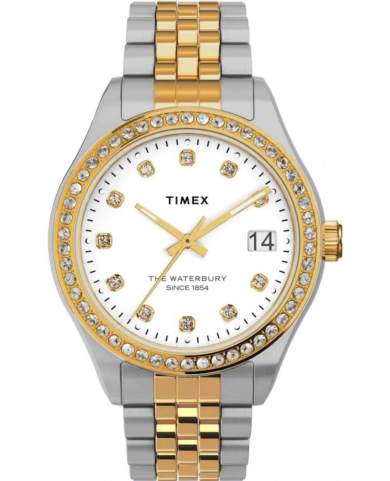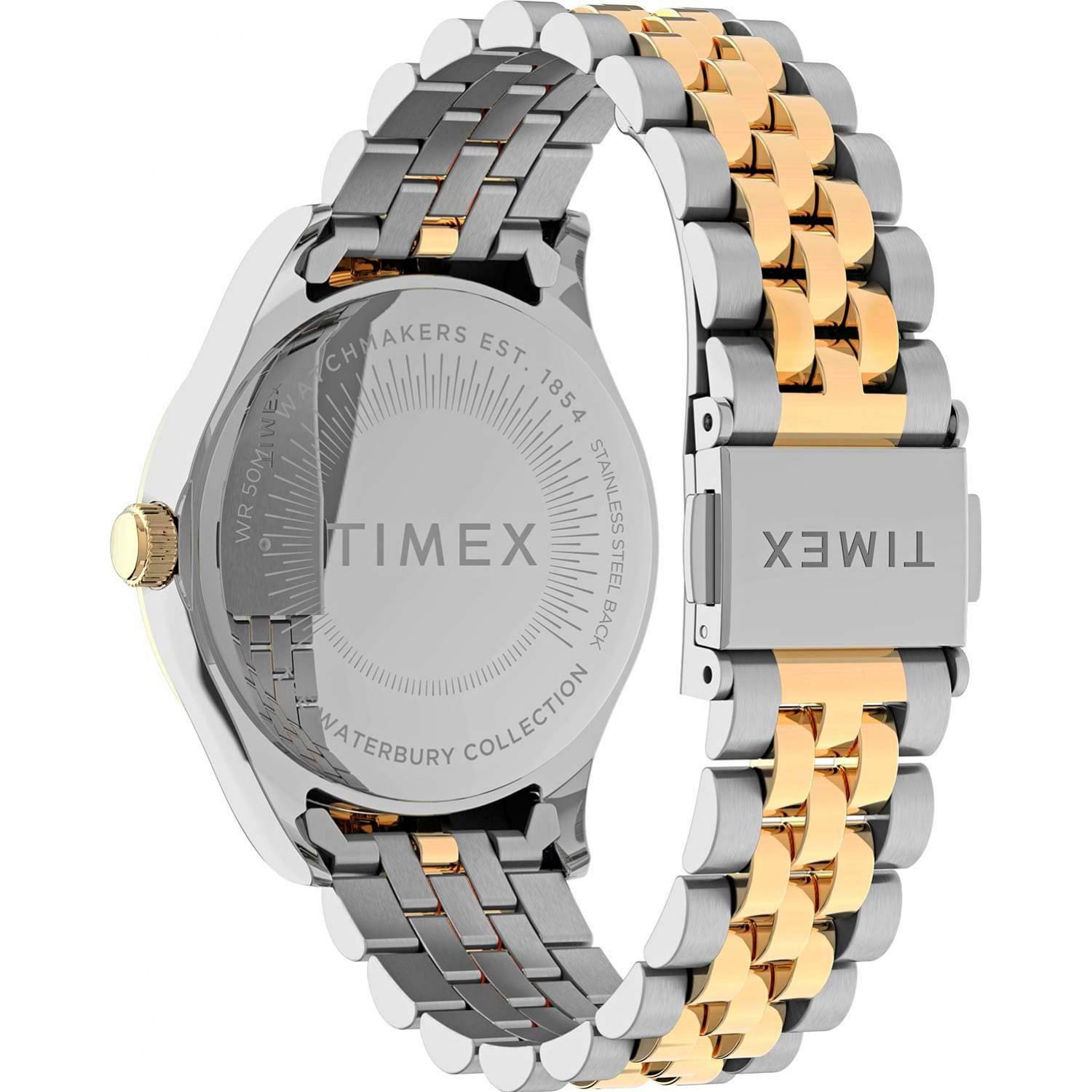 Часы Timex TW2U53900 из коллекции Heritage Waterbury — это элегантный женский аксессуар, объединяющий классический стиль и современные технологии. Корпус диаметром 34 мм и браслет выполнены из нержавеющей стали с двухцветным серебристо-золотистым PVD-покрытиемPVDУльтратонкое покрытие наносится в технике вакуумного напыления, сочетает в себе нитрид титана особой прочности со слоем золота или оксида хрома. Несёт в себе декоративную или защитную функцию., что придаёт часам изысканный вид. Серебристый циферблат украшен кристаллами Swarovski, а стрелки и индексы покрыты люминесцентным составомЛюминесцентное покрытиеПозволяет считывать показания времени в темноте. Производители наносят на стрелки, часовые индексы, безель или поверхность циферблата светонакопительный состав, дающий холодное свечение., обеспечивая отличную читаемость даже в условиях низкой освещённости.
