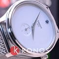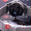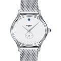 Аксессуар стилизован под ювелирное изделие, на минималистичном циферблате, украшенным голубым камушком, отсутствуют часовые метки. Часы дополнены браслетом из нержавеющей стали миланского плетения, оригинальный вариант стильно смотрится на запястье. Отдельный секундный счётчик. Кварцевый механизм ETA 980.153. Водонепроницаемость 3 бар. Сапфировое стекло невозможно поцарапать. Функция EOLEOLПредставляет собой систему, уведомляющую владельца часов о необходимости замены элемента питания. За 2 недели до полного разряда батарейки секундная стрелка перестаёт ходить чётко и начинает перепрыгивать на 3-4 деления.. Габариты: 28 x 31,4 x 6,6 мм.