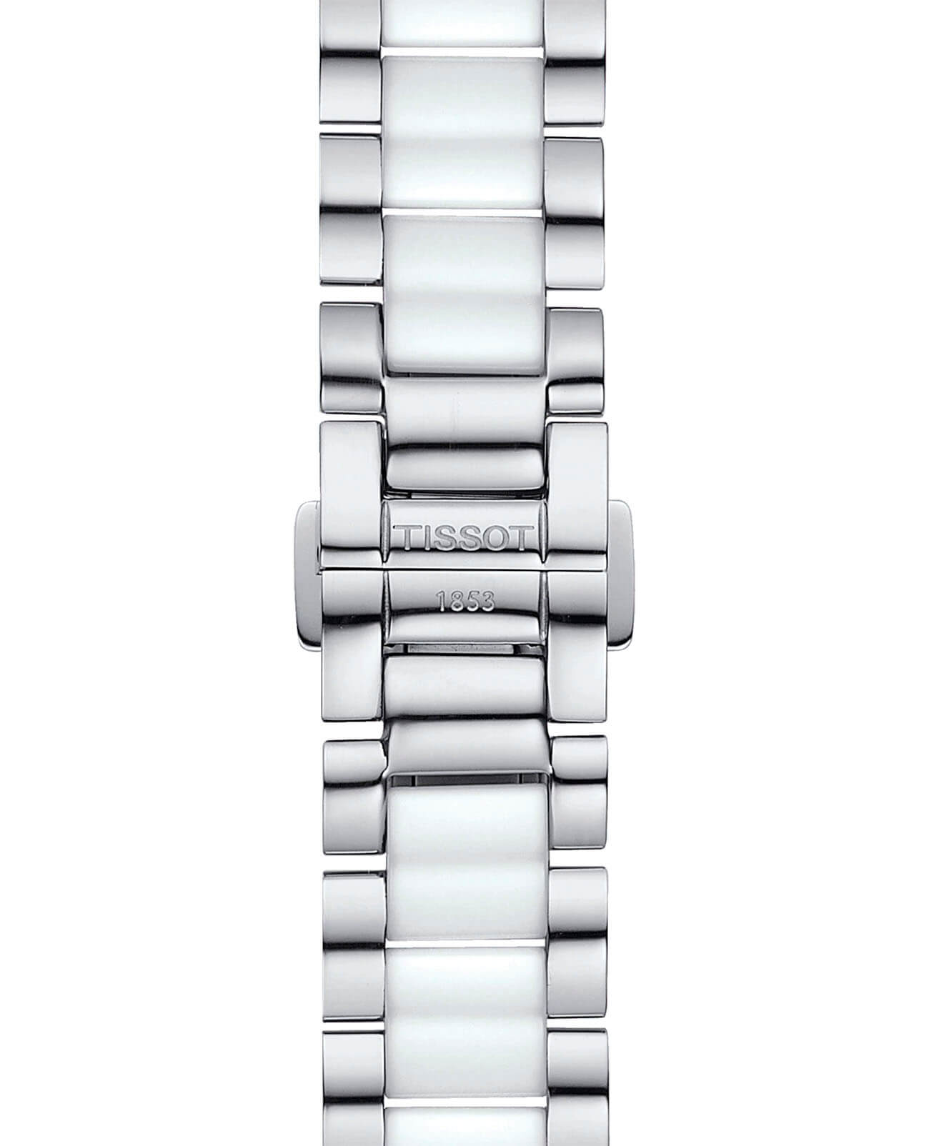 Модель в серебристо-белом оформлении станет изящным украшением к вечернему платью или классическому костюму. Для изготовления часов использовались современные материалы: хирургическая сталь и керамика, отличающаяся гипоаллергенными свойствами. Керамика принимает температурный режим тела человека и обеспечивает комфорт при ношении. Циферблат инкрустирован бриллиантами, имеющими законное происхождение. Кварцевый механизм ETA F03.111. Функция EOLEOLПредставляет собой систему, уведомляющую владельца часов о необходимости замены элемента питания. За 2 недели до полного разряда батарейки секундная стрелка перестаёт ходить чётко и начинает перепрыгивать на 3-4 деления.. Габариты: 28 x 28 x 6,4 мм.
