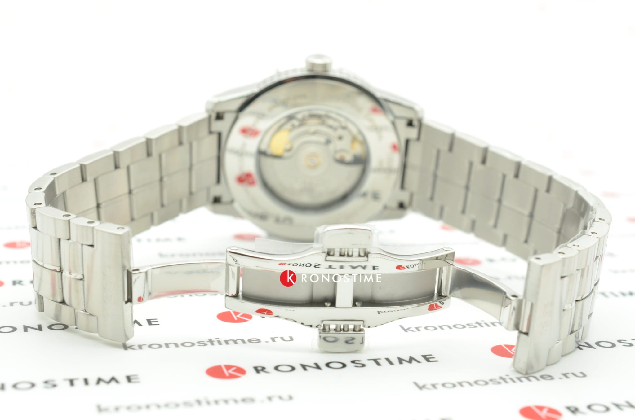 Браслет в оригинальном исполнении сделан из нержавеющей стали, его тяжесть приятна, не вызывает дискомфорта при нахождении на руке. Чёрный фон циферблата придаёт модели сдержанный облик, элегантная классика красиво смотрится с любой одеждой. Внутри стального корпуса заключён швейцарский механизм Powermatic 80Powermatic 80Эксклюзивный калибр от швейцарской компании ETA с увеличенным запасом хода до 80 часов за счёт удлинённой заводной пружины. Характеризуется улучшенной системой спуска со сниженным трением. с запасом хода 80 часов. Его работу всегда можно увидеть через прозрачную заднюю крышку. Сапфировое стекло с двухсторонним покрытием "антиблик". Водонепроницаемость до 5 бар. Апертура даты. Габариты: 41 x 41 x 9,8 мм.