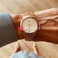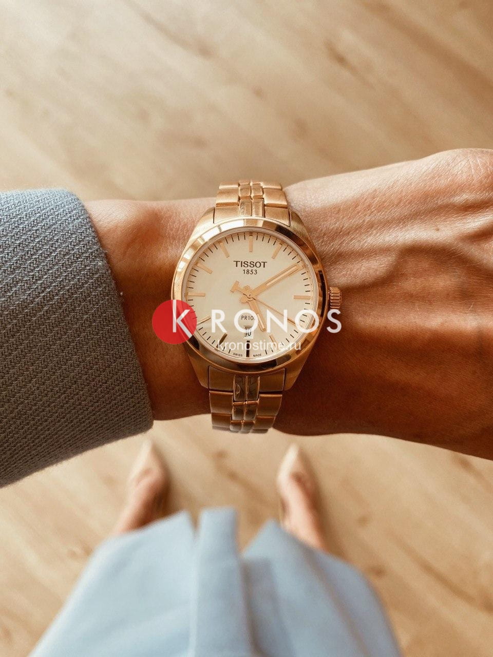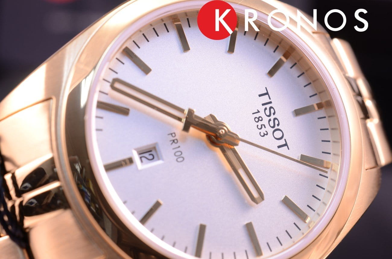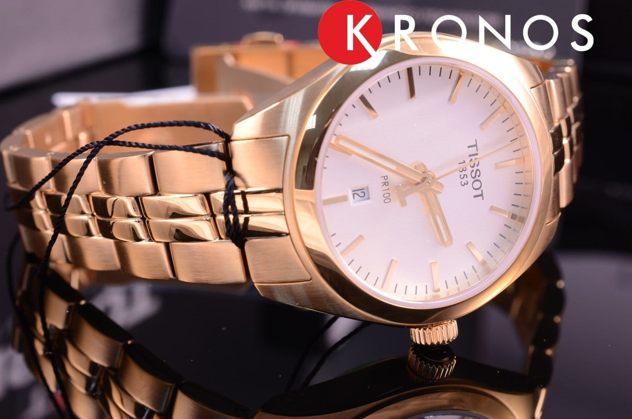 Часы являются воплощением традиций Tissot и элегантности, модель в цвете розового золота будет уместна на любом мероприятии. Такой оттенок образуется благодаря PVD-покрытиюPVDУльтратонкое покрытие наносится в технике вакуумного напыления, сочетает в себе нитрид титана особой прочности со слоем золота или оксида хрома. Несёт в себе декоративную или защитную функцию., устойчивому к царапинам и повреждениям. Кварцевый высокоточный калибр ETA F04.111. Сапфировое стекло. Люминесцентное покрытиеЛюминесцентное покрытиеПозволяет считывать показания времени в темноте. Производители наносят на стрелки, часовые индексы, безель или поверхность циферблата светонакопительный состав, дающий холодное свечение. стрелок. Водостойкость 100 метров. Застёжка бабочка с кнопками. Функционал: EOLEOLПредставляет собой систему, уведомляющую владельца часов о необходимости замены элемента питания. За 2 недели до полного разряда батарейки секундная стрелка перестаёт ходить чётко и начинает перепрыгивать на 3-4 деления., индикация даты. Габариты: 33 x 33 x 9 мм.
