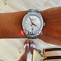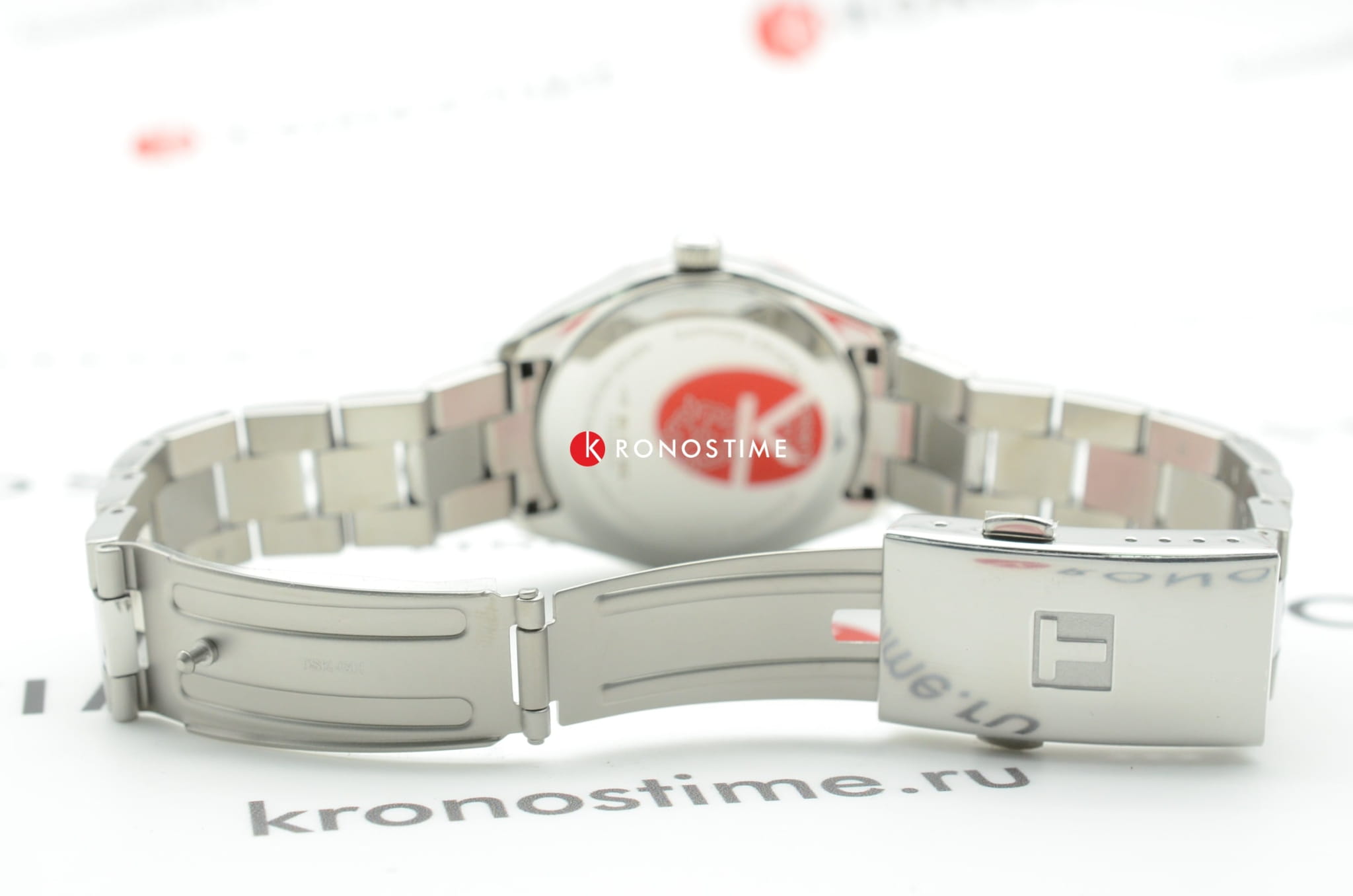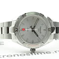 Серебряный цвет гармонирует с любой одеждой, компактный стальной корпус отлично подходит для тонкого запястья. Кварцевый калибр ETA 955.412 измеряет время с высокой точностью. Водонепроницаемость при давлении 10 бар на глубине 100 метров. Сапфировое стекло противостоит появлению царапин. Функции: EOL, дата. Габариты: 36 x 36 x 9 мм.