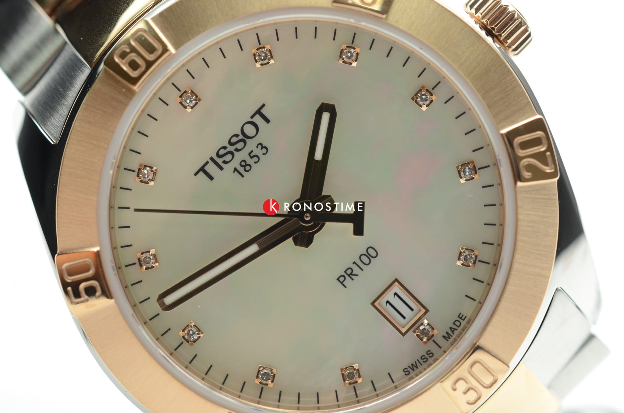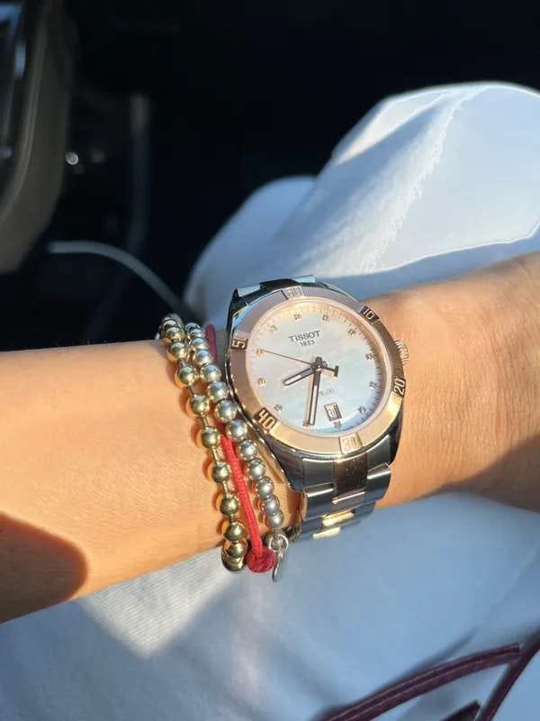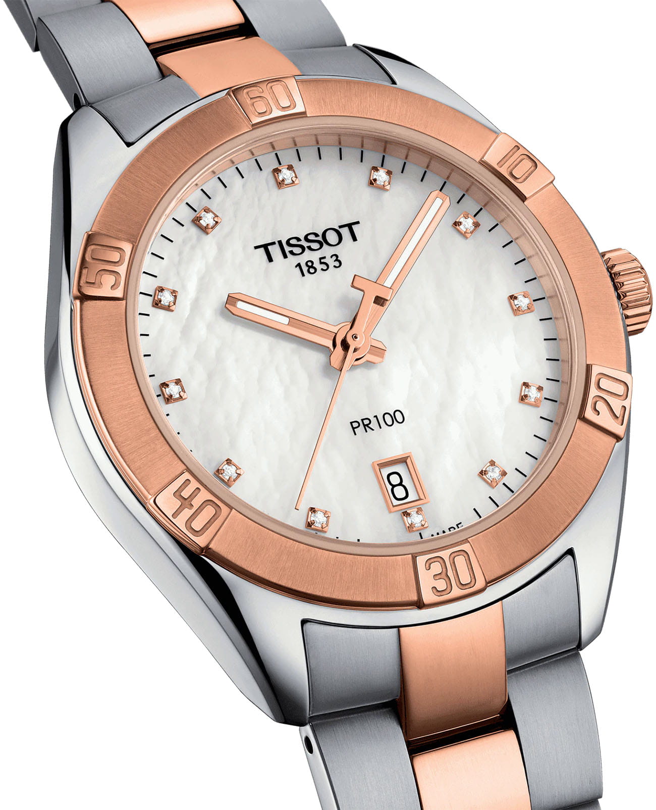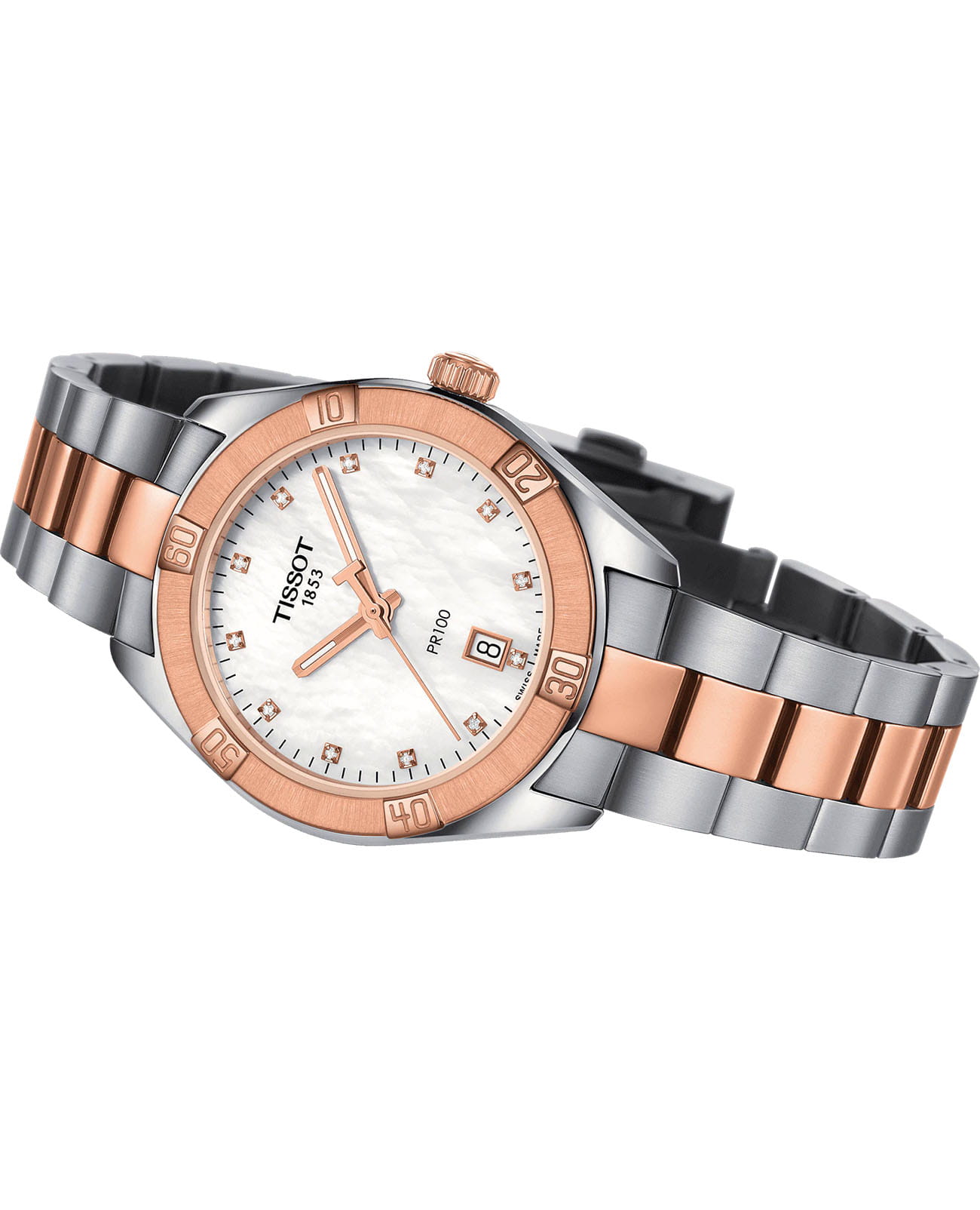 Женские наручные часы PR 100 Sport Chic были задуманы как повседневный аксессуар, но благодаря своему роскошному дизайну они прекрасно сочетаются и с вечерними нарядами. Циферблат украшен бриллиантами цвета Top Wesselton, добытыми без участия в конфликтах. Часы заключены в корпус из хирургической стали с золотистым PVD-покрытиемPVDУльтратонкое покрытие наносится в технике вакуумного напыления, сочетает в себе нитрид титана особой прочности со слоем золота или оксида хрома. Несёт в себе декоративную или защитную функцию., которое обеспечивает высокую износостойкость. В них установлен швейцарский кварцевый механизм ETA 955.412, защищённый с надёжным сапфировым стекломСапфировое стеклоПрочный и надёжный материал из кристалла сапфира синтетического происхождения, характеризующийся особой твёрдостью и устойчивостью к царапинам и повреждениям.. Водонепроницаемость до 100 метров, а среди функций есть индикация даты и система EOL. Размеры часов составляют 36 x 36 x 9 миллиметров. Производство и сборка осуществляются в Швейцарии.
