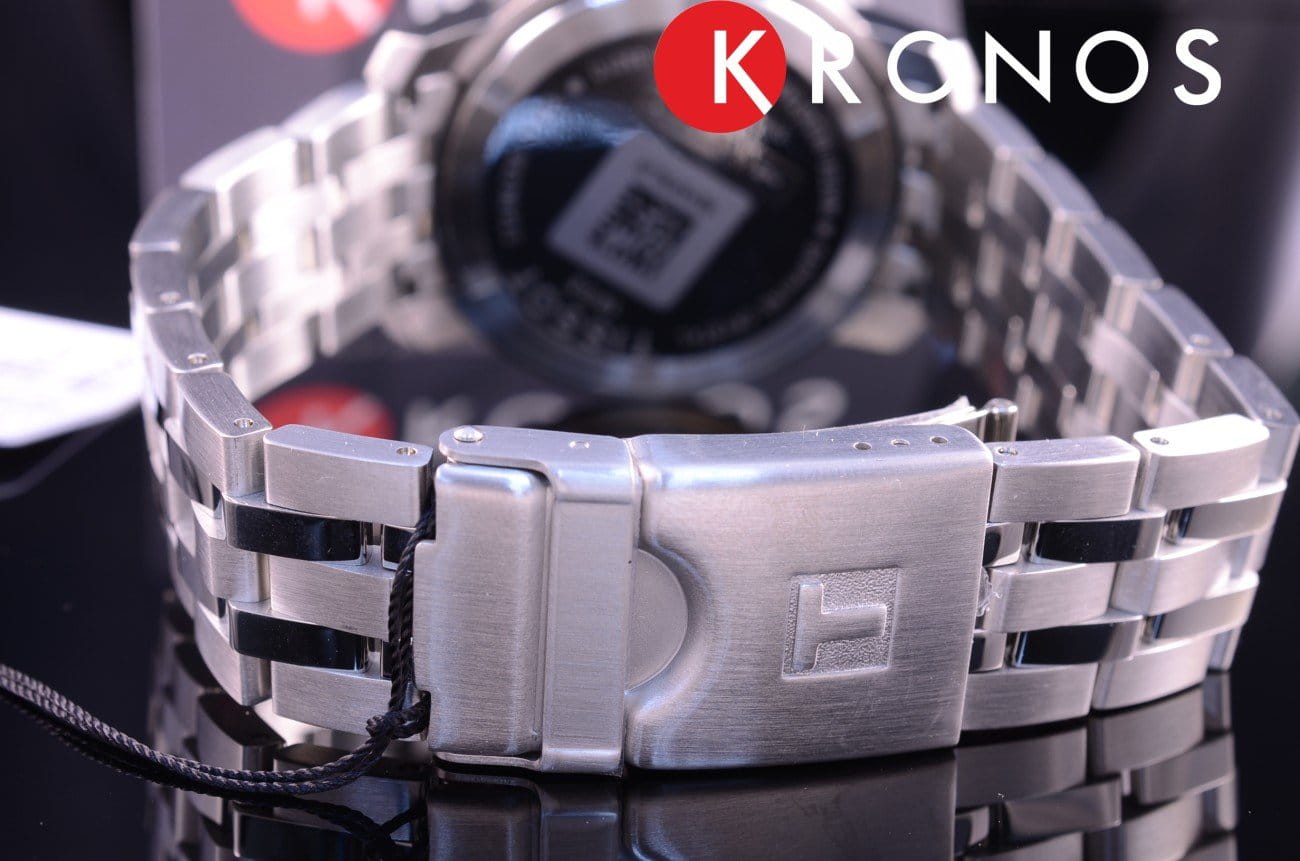 Крупный циферблат ярко-синего оттенка гармонирует с металлическим блеском нержавеющей стали, которая использована для изготовления корпуса и браслета. Кварцевый калибр ETA 805.112 отличается высокой точностью хода. Люминесцентная подсветкаЛюминесцентное покрытиеПозволяет считывать показания времени в темноте. Производители наносят на стрелки, часовые индексы, безель или поверхность циферблата светонакопительный состав, дающий холодное свечение.. Водонепроницаемость до 20 бар - в часах можно плавать и нырять. Сапфировое стекло. Застёжка с удлинением для дайверовУдлинение для дайверовЗастёжка с удлинением для дайверов представляет собой безопасное крепление, которое позволяет надевать часы поверх гидрокостюма. Гибкая застёжка удлиняется на 1-2 миллиметра.. Габариты: 39,3 x 39 x 10,6 мм.