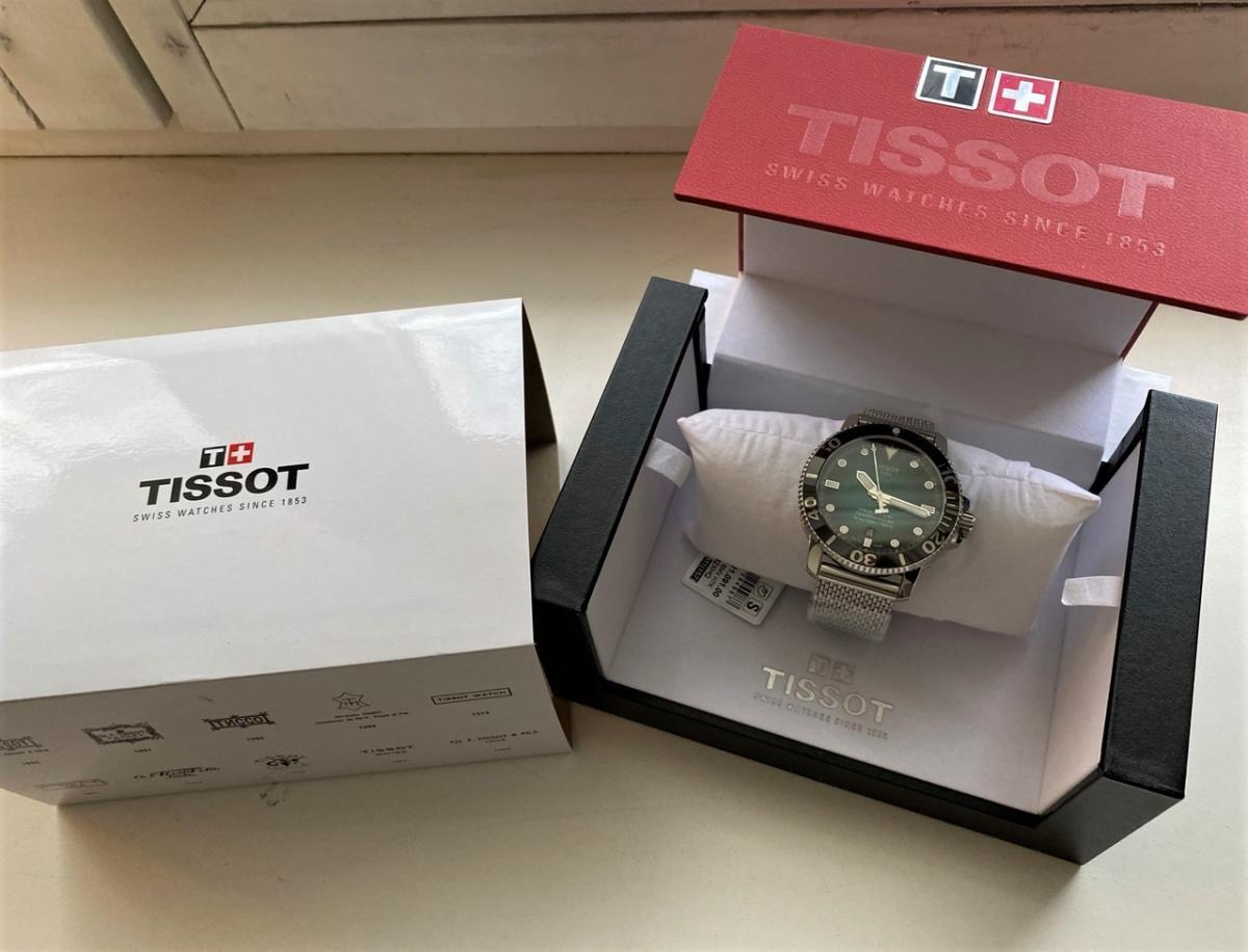 Перед Новым годом стал обладателем часов T120.407.11.091.00 TISSOT SEASTAR 1000 POWERMATIC 80. Всегда отдавал предпочтение дайверским часам, из-за классного внешнего вида, неубиваемости, прекрасного люма и др. Пользовался часами «Восток» ( бочка) и Ориент Рэй-2, но всегда засматривался на данную модель Тиссот. И вот , ознакомившись со всей информацией в интернете, я решился на приобретение данных часов. Хотел именно на миланском браслете из-за отличного внешнего вида, удобства и не большого веса. И так, часы сидят удобно на моем запястье 17,5 см. Не тяжелые ( вес 147 гр. ). Ощущаются комфортно. Зелёный циферблат смотрится просто сногсшибательно. Керамический безель и сапфировое стекло очень красиво отсвечивают и отражают. Безель однонаправленный на 120 кликов. Люм виден всю ночь. Окошко даты легко читается. Несмотря на толщину в 12,7 мм. часы смотрятся очень элегантно. Задняя крышка завинчивающаяся, прозрачная. Погрешность хода на моих часах +1 секунда в сутки, что очень хороший результат для механики. Про механизм Powermatic 80.111 ходят много мнений и слухов по поводу наличия в нём композитных частей в механизме. Кто-то пишет что они пластиковые, что является полным бредом. Ближе к истине то , что данные детали изготовлены из композитного материала на основе карбона, которые гораздо долговечнее металла. Смотрел видео, где люди, имеющие не последнее место в часовом бизнесе сказали , что последние два года в данный механизм устанавливаются только железные части. В любом случае, негативных отзывов о данном мехе не найдено не одного, а он выпущен с 2013 года. Поэтому я уверен , что данные часы прослужат не одно десятилетие верой и правдой. Подводя итог хочу сказать ,что часы просто великолепны во всех аспектах. А покупать их или нет, это уже дело каждого.