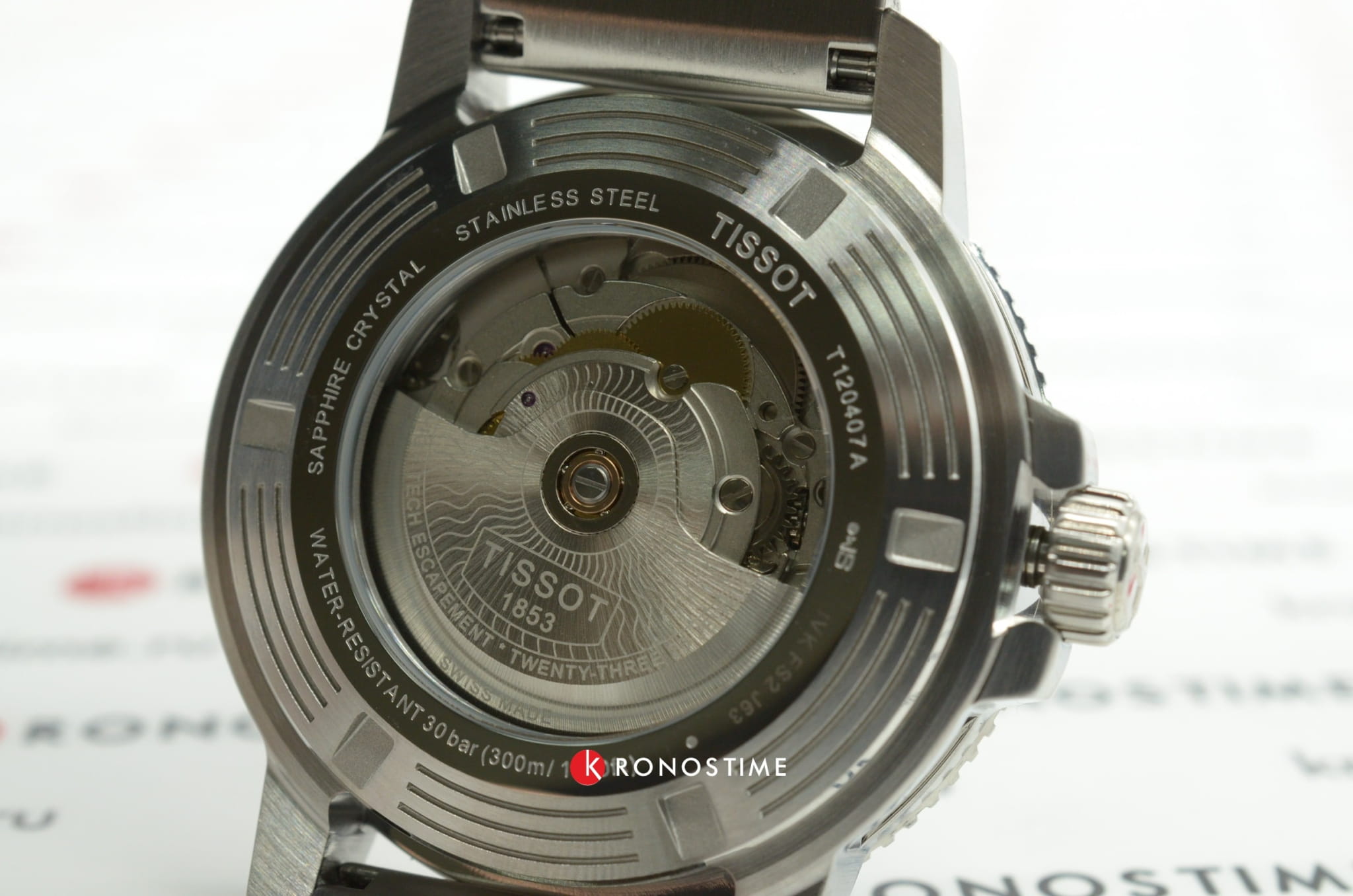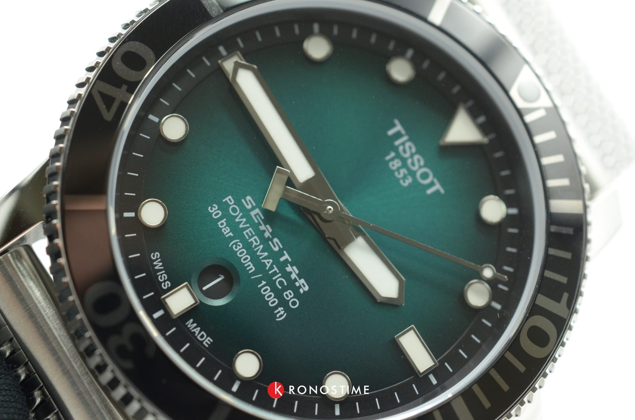 Перед Новым годом стал обладателем часов T120.407.11.091.00 TISSOT SEASTAR 1000 POWERMATIC 80. Всегда отдавал предпочтение дайверским часам, из-за классного внешнего вида, неубиваемости, прекрасного люма и др. Пользовался часами «Восток» ( бочка) и Ориент Рэй-2, но всегда засматривался на данную модель Тиссот. И вот , ознакомившись со всей информацией в интернете, я решился на приобретение данных часов. Хотел именно на миланском браслете из-за отличного внешнего вида, удобства и не большого веса. И так, часы сидят удобно на моем запястье 17,5 см. Не тяжелые ( вес 147 гр. ). Ощущаются комфортно. Зелёный циферблат смотрится просто сногсшибательно. Керамический безель и сапфировое стекло очень красиво отсвечивают и отражают. Безель однонаправленный на 120 кликов. Люм виден всю ночь. Окошко даты легко читается. Несмотря на толщину в 12,7 мм. часы смотрятся очень элегантно. Задняя крышка завинчивающаяся, прозрачная. Погрешность хода на моих часах +1 секунда в сутки, что очень хороший результат для механики. Про механизм Powermatic 80.111 ходят много мнений и слухов по поводу наличия в нём композитных частей в механизме. Кто-то пишет что они пластиковые, что является полным бредом. Ближе к истине то , что данные детали изготовлены из композитного материала на основе карбона, которые гораздо долговечнее металла. Смотрел видео, где люди, имеющие не последнее место в часовом бизнесе сказали , что последние два года в данный механизм устанавливаются только железные части. В любом случае, негативных отзывов о данном мехе не найдено не одного, а он выпущен с 2013 года. Поэтому я уверен , что данные часы прослужат не одно десятилетие верой и правдой. Подводя итог хочу сказать ,что часы просто великолепны во всех аспектах. А покупать их или нет, это уже дело каждого.