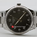 Лаконичный чёрный циферблат с арабскими цифрами привлекательно смотрится на запястье, отлично сочетаясь с серебристыми переливами корпуса и браслета из нержавеющей стали 316L. Часы оснащены кварцевым механизмом ETA F06.115 с высокой точностью хода. Сапфировое стекло устойчиво к образованию царапин. Яркая люминесцентная подсветкаЛюминесцентное покрытиеПозволяет считывать показания времени в темноте. Производители наносят на стрелки, часовые индексы, безель или поверхность циферблата светонакопительный состав, дающий холодное свечение.. Функция EOLEOLПредставляет собой систему, уведомляющую владельца часов о необходимости замены элемента питания. За 2 недели до полного разряда батарейки секундная стрелка перестаёт ходить чётко и начинает перепрыгивать на 3-4 деления., апертура даты. Габариты: 42 x 42 x 8,9 мм.