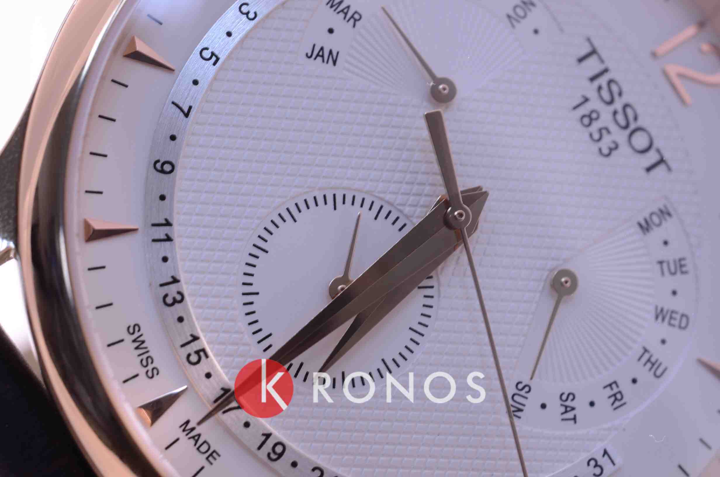 Вечный календарь, сапфировое стекло, отображение числа, отображение дня недели, отображение месяца.