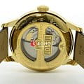 Наручные часы станут идеальным дополнением для делового или повседневного образа, дизайн продуман до мелочей. Светлый циферблат с характерным узором дополнен римскими цифрами в стиле ретро, в качестве главного украшения используется 8 бриллиантов цвета Top Wesselton в 0,04 карат. Стальной корпус имеет золотистое PVD-покрытиеPVDУльтратонкое покрытие наносится в технике вакуумного напыления, сочетает в себе нитрид титана особой прочности со слоем золота или оксида хрома. Несёт в себе декоративную или защитную функцию.. Автоматический калибр ETA Powermatic 80Powermatic 80Эксклюзивный калибр от швейцарской компании ETA с увеличенным запасом хода до 80 часов за счёт удлинённой заводной пружины. Характеризуется улучшенной системой спуска со сниженным трением. с 80-часовым запасом хода. Стекло из сапфира. Коричневый ремешок из натуральной кожи. Габариты: 39,3 x 39,3 x 9,8 мм.
