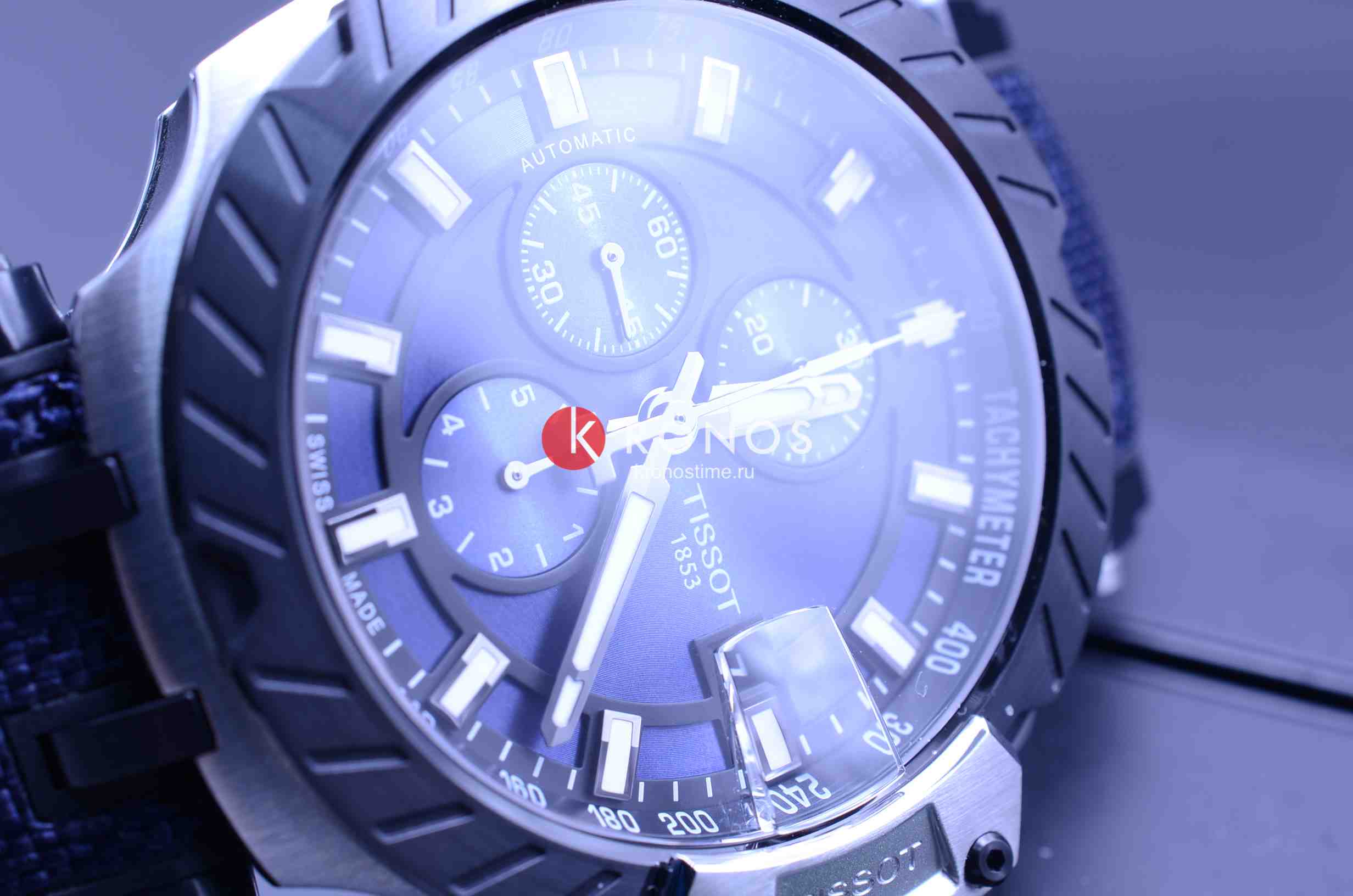 БезельБезельВнешний ободок, закрепляющий стекло. В спортивных часах так называется поворотное кольцо с делениями на циферблате, выполняет роль таймера – замеряет отрезки времени на шкале. Неподвижный безель – элемент декора. Однонаправленно вращающийся безель на дайверских часах позволяет фиксировать моменты погружения и выныривания на поверхность. выполнен в образе тормозного диска, чёрный цвет сочетается с синими переливами массивного циферблата со счётчиками хронографаХронографФункция позволяет измерять отрезки времени с особой точностью: часы, минуты, секунды. Верным признаком хронографа является наличие на циферблате 3 дополнительных окошек-счётчиков.. Задняя крышка сделана в виде колеса. Механические часы с автоподзаводом оснащены швейцарским механизмом C01.211, сохраняющим запас хода до 40 часов. Корпус из долговечной стали 316L с PVD-покрытиемPVDУльтратонкое покрытие наносится в технике вакуумного напыления, сочетает в себе нитрид титана особой прочности со слоем золота или оксида хрома. Несёт в себе декоративную или защитную функцию.. Ремешок из каучука и натуральной кожи. Секундомер, календарь, тахиметрТахиметрРазмеченная шкала, располагается на ободке или безеле часов. Тахиметр позволяет рассчитать скорость на определённом участке пути, расстояние измеряется в километрах или милях.. Габариты: 48,8 x 45 x 16,6 мм.