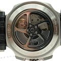 Наручные часы с антрацитовым циферблатом воплощают собой отражение мотогоночных соревнований, даже прозрачная задняя крышка выполнена в виде колеса. Оригинальности добавляет внушительный фактурный безельБезельВнешний ободок, закрепляющий стекло. В спортивных часах так называется поворотное кольцо с делениями на циферблате, выполняет роль таймера – замеряет отрезки времени на шкале. Неподвижный безель – элемент декора. Однонаправленно вращающийся безель на дайверских часах позволяет фиксировать моменты погружения и выныривания на поверхность.. Внутри стального корпуса с PVD-покрытиемPVDУльтратонкое покрытие наносится в технике вакуумного напыления, сочетает в себе нитрид титана особой прочности со слоем золота или оксида хрома. Несёт в себе декоративную или защитную функцию. находится автоматический калибр C01.211 с запасом хода 45 часов. Стильный ремешок из каучука и кожи. Стекло из сапфира с антибликовым покрытием. Функции: хронографХронографФункция позволяет измерять отрезки времени с особой точностью: часы, минуты, секунды. Верным признаком хронографа является наличие на циферблате 3 дополнительных окошек-счётчиков., секундомер, отображение даты, тахиметрТахиметрРазмеченная шкала, располагается на ободке или безеле часов. Тахиметр позволяет рассчитать скорость на определённом участке пути, расстояние измеряется в километрах или милях.. Габариты: 48,8 x 45 x 16,6 мм.