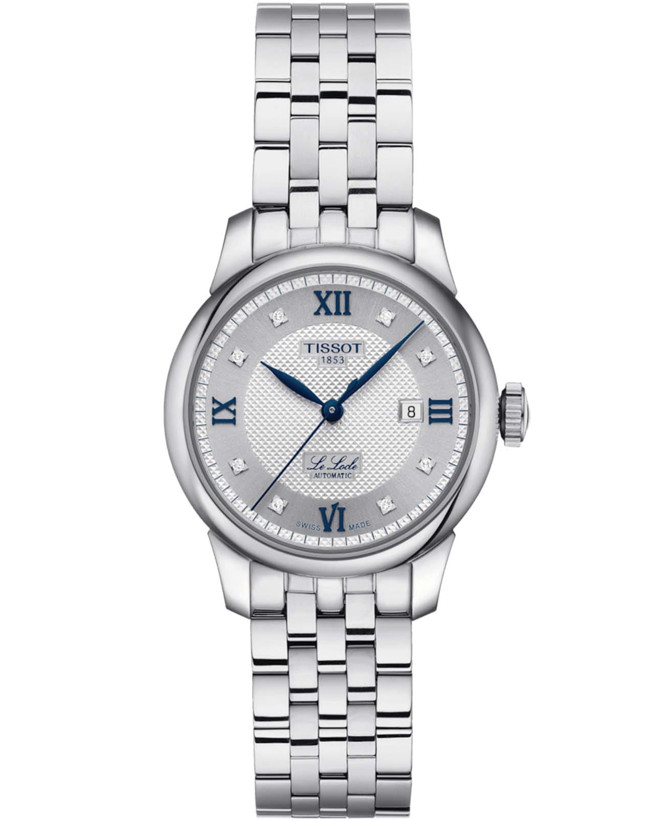 Женские швейцарские наручные часы Tissot Le Locle Automatic Lady T006.207.11.036.01 с надёжным автоматическим механизмом. Корпус часов изготовлен из нержавеющей стали 316L. Циферблат инкрустирован бриллиантами в 0,0104 карат, роскошное сияние драгоценных камней добавляет эксклюзивности. Швейцарский автоматический калибр ETA 2671 с запасом хода 38 часов. Сапфировое стеклоСапфировое стеклоПрочный и надёжный материал из кристалла сапфира синтетического происхождения, характеризующийся особой твёрдостью и устойчивостью к царапинам и повреждениям. устойчивое к возникновению царапин. Стальной браслет на . Окошко даты находится в положении 3 часа. В комплект входит быстросъемный кожаный ремешок на стандартной застёжке. Производство и сборка: Швейцария.