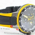 Спортивный аксессуар станет заметным элементом индивидуального образа, броская модель позволит вам стать ключевой персоной в любой ситуации. Часы выполнены в жёлто-чёрном исполнении, яркие цветовые детали официальных оттенков гонки придают им динамичность. Они идеально сидят на запястье благодаря комфортному силиконовому ремешку. Швейцарский кварцевый механизм ETA G10.212. Сапфировое стекло. Прочный корпус с чёрным и серым PVD-покрытиемPVDУльтратонкое покрытие наносится в технике вакуумного напыления, сочетает в себе нитрид титана особой прочности со слоем золота или оксида хрома. Несёт в себе декоративную или защитную функцию.. Силиконовый ремешок с водоотталкивающими свойствами. Люминесцентная подсветкаЛюминесцентное покрытиеПозволяет считывать показания времени в темноте. Производители наносят на стрелки, часовые индексы, безель или поверхность циферблата светонакопительный состав, дающий холодное свечение.. Функции: хронографХронографФункция позволяет измерять отрезки времени с особой точностью: часы, минуты, секунды. Верным признаком хронографа является наличие на циферблате 3 дополнительных окошек-счётчиков., секундомер, календарь, тахиметрТахиметрРазмеченная шкала, располагается на ободке или безеле часов. Тахиметр позволяет рассчитать скорость на определённом участке пути, расстояние измеряется в километрах или милях.. Габариты: 44,5 x 44,5 x 11,4 мм.