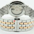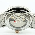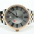 Минималистичный циферблат, дополненный римскими цифрами, привлекает визуальной глубиной. Наручные часы станут привлекательным атрибутом офисного дресс-кода благодаря строгой цветовой гамме, лаконичному дизайну, отсутствию громоздких деталей. Модель комплектуется автоматическим швейцарским механизмом ETA Powermatic 80Powermatic 80Эксклюзивный калибр от швейцарской компании ETA с увеличенным запасом хода до 80 часов за счёт удлинённой заводной пружины. Характеризуется улучшенной системой спуска со сниженным трением. с увеличенным резервом хода до 80 часов. Прозрачная задняя крышка позволяет наблюдать за движением деталей калибра. Часы выполнены из стали 316L с PVD-покрытиемPVDУльтратонкое покрытие наносится в технике вакуумного напыления, сочетает в себе нитрид титана особой прочности со слоем золота или оксида хрома. Несёт в себе декоративную или защитную функцию., материал устойчив к коррозии, повреждениям. Безопасная не допускает случайного раскрытия браслета. Сапфировое стекло препятствует появлению царапин. Класс водонепроницаемости – WR 50. В нижней части циферблата размещено окошко индикации числа. Габариты: 40 x 40 x 10,3 мм.