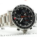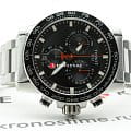 Современный хронографХронографФункция позволяет измерять отрезки времени с особой точностью: часы, минуты, секунды. Верным признаком хронографа является наличие на циферблате 3 дополнительных окошек-счётчиков. поможет подчеркнуть продуманный образ делового мужчины. Модель выполнена в спокойной серебристо-чёрной расцветке, исключение – ярко-красные стрелки, измеряющие секунды. Наручные часы функционируют благодаря швейцарскому кварцевому механизму ETA G10.212. Калибр отличается максимальной точностью хода. Стекло из сапфира. Водостойкость 100 метров. Надёжный корпус из антикоррозионной стали 316L. Люминесцентная подсветкаЛюминесцентное покрытиеПозволяет считывать показания времени в темноте. Производители наносят на стрелки, часовые индексы, безель или поверхность циферблата светонакопительный состав, дающий холодное свечение. стрелок и индексов. Секундомер, отображение даты. Диаметр корпуса: 45,5 мм.