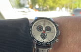 Броский аксессуар станет отличным вариантом для повседневного ношения, дополнения спортивного образа. Наручные часы дополнены перфорированным ремешком из натуральной кожи, что делает их ещё более стильными. Кварцевый механизм ETA G10.212. Керамический безельБезельВнешний ободок, закрепляющий стекло. В спортивных часах так называется поворотное кольцо с делениями на циферблате, выполняет роль таймера – замеряет отрезки времени на шкале. Неподвижный безель – элемент декора. Однонаправленно вращающийся безель на дайверских часах позволяет фиксировать моменты погружения и выныривания на поверхность.. Сапфировое стекло с антибликовым покрытием. Водонепроницаемость 100 метров. . Функционал: хронографХронографФункция позволяет измерять отрезки времени с особой точностью: часы, минуты, секунды. Верным признаком хронографа является наличие на циферблате 3 дополнительных окошек-счётчиков., секундомер, тахиметрТахиметрРазмеченная шкала, располагается на ободке или безеле часов. Тахиметр позволяет рассчитать скорость на определённом участке пути, расстояние измеряется в километрах или милях., календарь. Габариты: 45 x 45 x 12,1 мм.