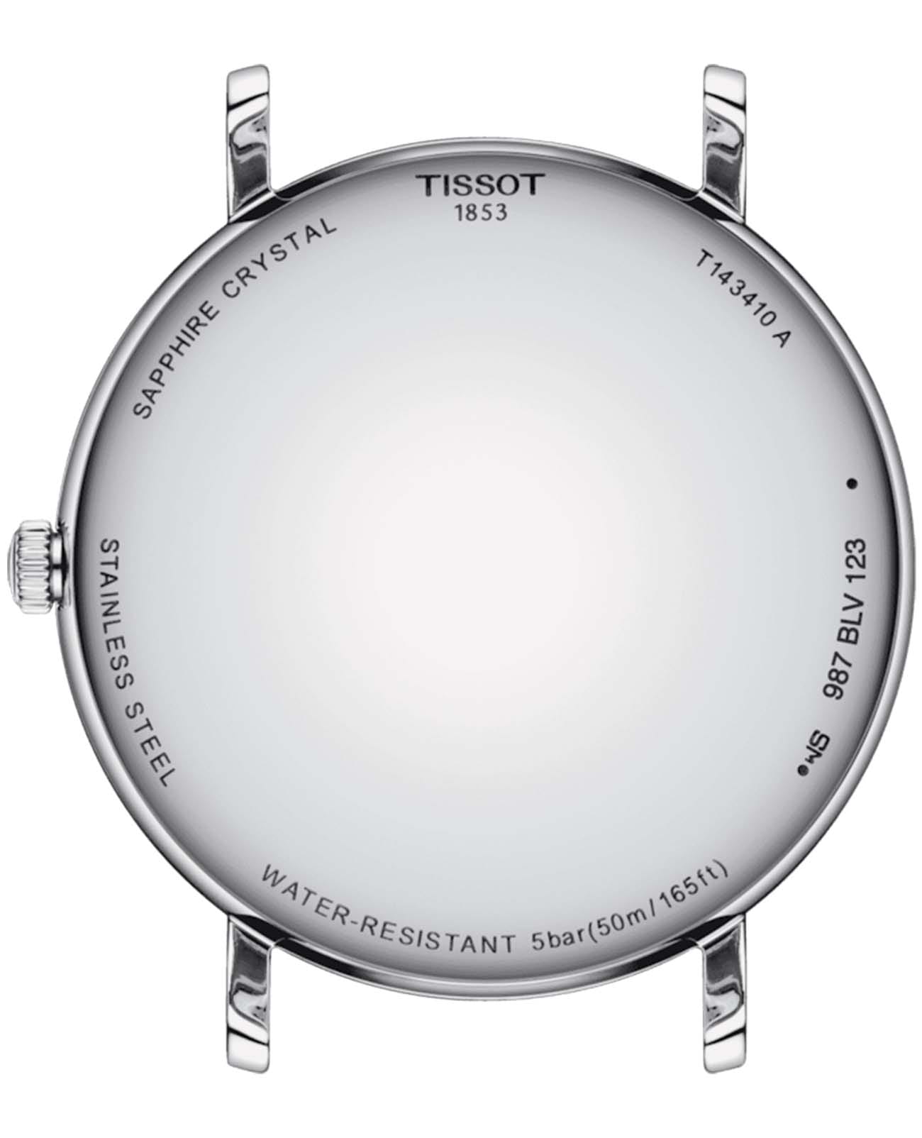 Мужские швейцарские часы Tissot Everytime T143.410.11.033.00. Кварцевый механизм с высокой точностью. Сапфировое стеклоСапфировое стеклоПрочный и надёжный материал из кристалла сапфира синтетического происхождения, характеризующийся особой твёрдостью и устойчивостью к царапинам и повреждениям. устойчивое к появлению царапин, обладающее высокой прозрачностью. Класс водозащиты: 50 метров, позволит защитить корпус от случайных брызг или капель дождя. Корпус часов изготовлен из нержавеющей стали 316L. Стальной браслет на застёжке-бабочке с кнопкамиЗастёжка "бабочка"Такой вид застёжки дополняется предохранителями, помогающими избежать случайного раскрытия браслета. Обладают изящным исполнением. .