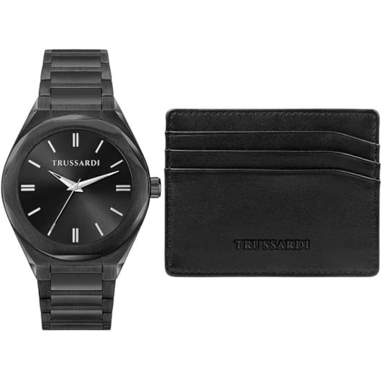 Итальянские мужские часы Trussardi Brink R2453156007 - это стильный мужской аксессуар, который сочетает элегантный дизайн и практичность. Корпус выполнен из нержавеющей стали с IP-покрытиемIP-покрытиеМетод ионного напыления. Демонстрирует повышенную устойчивость к истиранию, окислению и химическим веществам. Под воздействием высокого давления и температуры около 1500°C молекулы металла надёжно соединяются с частицами корпуса часов., что обеспечивает долговечность и утончённый внешний вид. Надежное минеральное стеклоМинеральное стеклоМинеральное стекло представляет собой искусственно выращенный минерал кварца. Такое стекло отличается особой устойчивостью к повреждениям и царапинам. Уступает по некоторым качествам сапфировому стеклу. защищает циферблат от царапин и обеспечивает долговечность. Модель оснащена кварцевым механизмом, обеспечивающим высокую точность хода. Браслет из нержавеющей стали с IP-покрытиемIP-покрытиеМетод ионного напыления. Демонстрирует повышенную устойчивость к истиранию, окислению и химическим веществам. Под воздействием высокого давления и температуры около 1500°C молекулы металла надёжно соединяются с частицами корпуса часов.  с раскладной застёжкойРаскладная застёжкаТакой тип застёжки используется только на браслетах из металла. Она никогда не раскрывается полностью, происходит разделение на 2 и более частей. Раскладывающая застёжка снизит вероятность потери часов к минимуму. обеспечивает комфортное ношение. Водозащита 50 метров позволит защитить корпус от случайных брызг или капель дождя. Стрелки оснащены люминесцентным покрытиемЛюминесцентное покрытиеПозволяет считывать показания времени в темноте. Производители наносят на стрелки, часовые индексы, безель или поверхность циферблата светонакопительный состав, дающий холодное свечение., обеспечивающим отличную видимость даже при слабом освещении. Эта модель – отличный выбор для тех, кто ищет сочетание стиля, качества и функциональности. Часы станут не только полезным аксессуаром, но и выразительным элементом вашего имиджа. В наборе с часами идет кожаная кредитница.