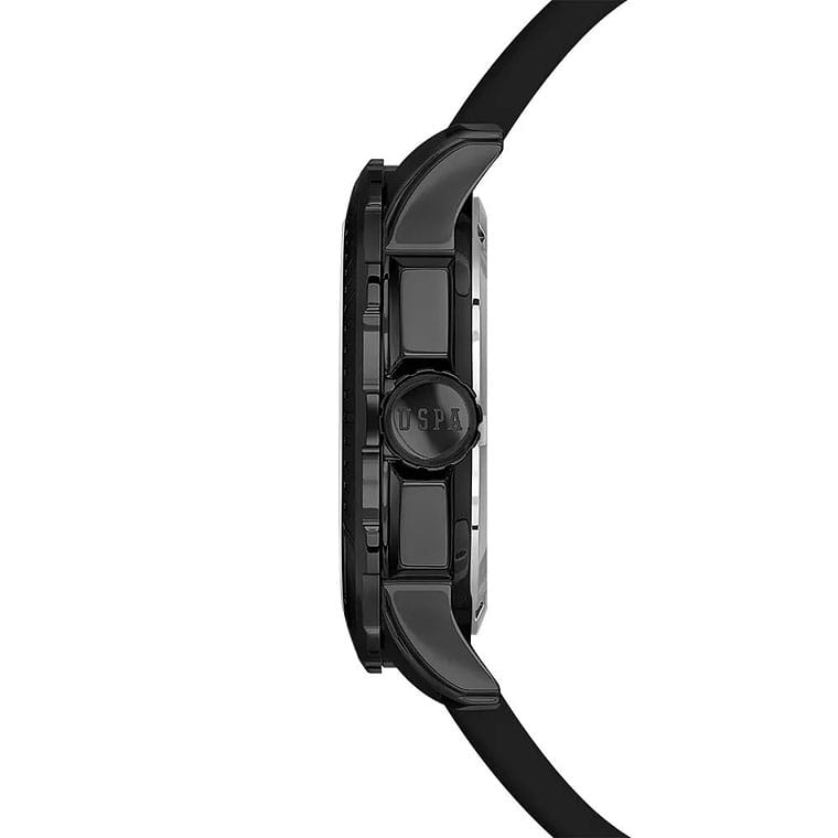 Мужские изысканные американские часы U.S. Polo Assn. Crossing USPA1066-05, кварцевый механизм с высокой точностью. Минеральное стеклоМинеральное стеклоМинеральное стекло представляет собой искусственно выращенный минерал кварца. Такое стекло отличается особой устойчивостью к повреждениям и царапинам. Уступает по некоторым качествам сапфировому стеклу. устойчивое к появлению царапин, обладающее высокой прозрачностью. Корпус изготовлен из нержавеющей стали с PVDPVDУльтратонкое покрытие наносится в технике вакуумного напыления, сочетает в себе нитрид титана особой прочности со слоем золота или оксида хрома. Несёт в себе декоративную или защитную функцию. покрытием с поворотным безелемБезельВнешний ободок, закрепляющий стекло. В спортивных часах так называется поворотное кольцо с делениями на циферблате, выполняет роль таймера – замеряет отрезки времени на шкале. Неподвижный безель – элемент декора. Однонаправленно вращающийся безель на дайверских часах позволяет фиксировать моменты погружения и выныривания на поверхность.. На стильном черном циферблате три дополнительных индикатора. Центральные часовая, минутная и секундная стрелки. Индикация даты и дня недели. 12/24х часовой формат времени. Класс водозащиты: 50 метров, позволит защитить корпус от случайных брызг или капель дождя. Силиконовый ремешок черного цвета со стандартной застежкой безупречно дополняет корпус. Стрелки оснащены люминесцентным покрытиемЛюминесцентное покрытиеПозволяет считывать показания времени в темноте. Производители наносят на стрелки, часовые индексы, безель или поверхность циферблата светонакопительный состав, дающий холодное свечение., обеспечивающим хорошую читаемость в темноте. Модель подчёркивает индивидуальность владельца и идеально подходит как для повседневного, так и для делового образа.