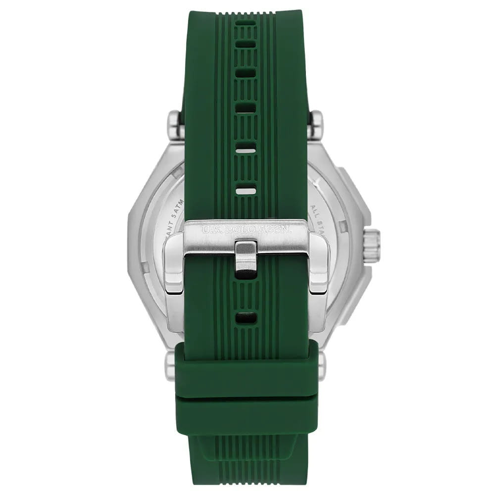 Мужские американские стильные часы U.S. Polo Assn. Fundamental USPA1107-03 с кварцевым механизмом с высокой точностью. Минеральное стеклоМинеральное стеклоМинеральное стекло представляет собой искусственно выращенный минерал кварца. Такое стекло отличается особой устойчивостью к повреждениям и царапинам. Уступает по некоторым качествам сапфировому стеклу. устойчивое к появлению царапин, обладающее высокой прозрачностью. Изысканный корпус изготовлен из нержавеющей стали. Серебристые центральные часовая, минутная и секундная стрелки. Окошко даты находится в положении 3 часов. Класс водозащиты: 50 метров, позволит защитить корпус от случайных брызг или капель дождя. Часы оснащены люминесцентным покрытиемЛюминесцентное покрытиеПозволяет считывать показания времени в темноте. Производители наносят на стрелки, часовые индексы, безель или поверхность циферблата светонакопительный состав, дающий холодное свечение., обеспечивающим хорошую читаемость в темноте. Силиконовый ремень со стандартной застежкой обеспечивает комфорт и удобство в использовании, добавляя завершающий штрих к этому стильному и высокоэффективному аксессуару. Модель подчёркивает индивидуальность владельца и идеально подходит как для повседневного, так и для делового образа.