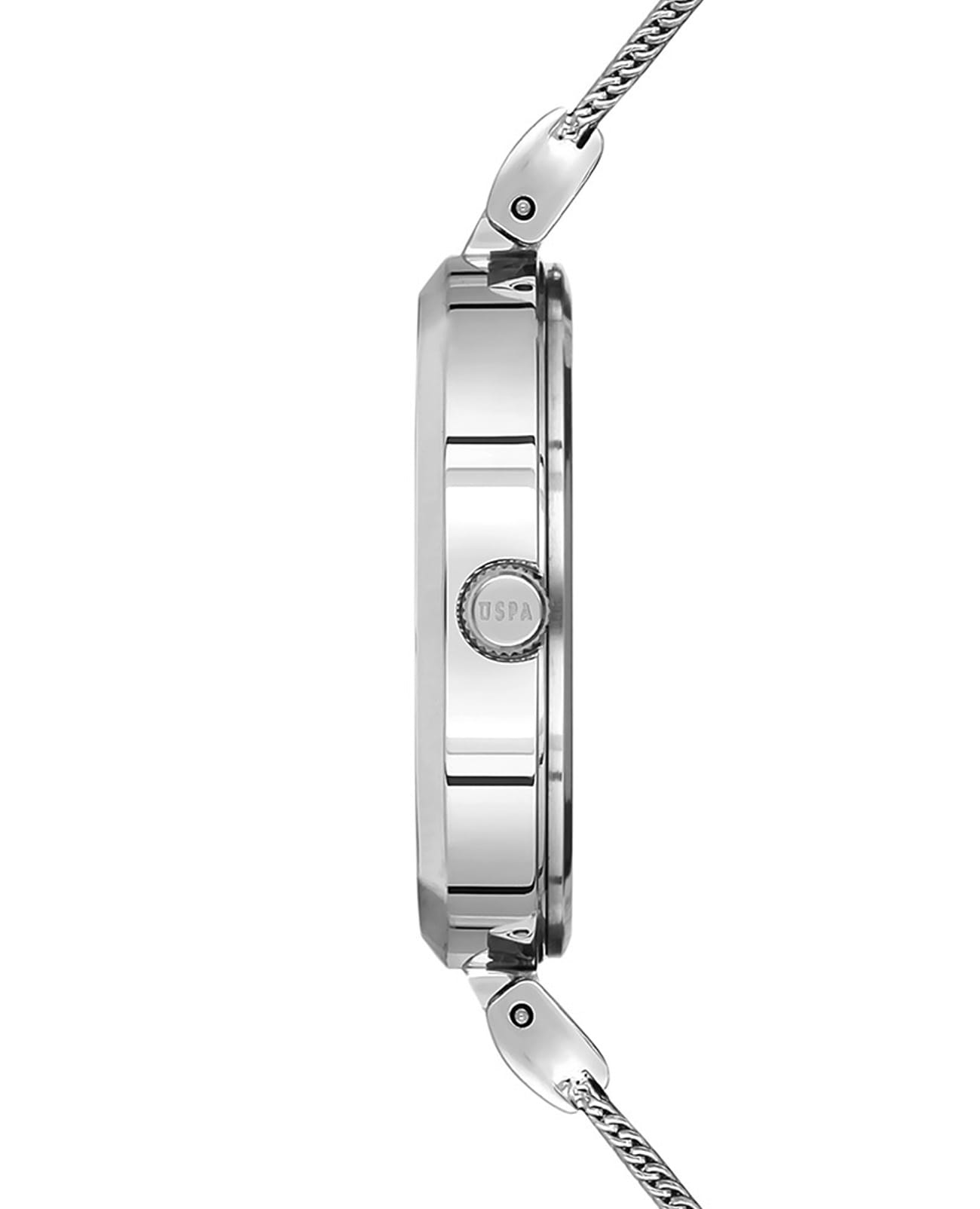 Женские часы U.S. Polo Assn. Stile USPA2025-04, кварцевый механизм с высокой точностью. Минеральное стеклоМинеральное стеклоМинеральное стекло представляет собой искусственно выращенный минерал кварца. Такое стекло отличается особой устойчивостью к повреждениям и царапинам. Уступает по некоторым качествам сапфировому стеклу. устойчивое к появлению царапин, обладающее высокой прозрачностью. Корпус и браслет изготовлены из нержавеющей стали. Циферблат украшен кристаллами. Класс водозащиты: 30 метров, позволит защитить корпус от случайных брызг или капель дождя. Браслет миланского плетения на раскладном замкеРаскладной замокДанный вариант застежки используется только на часах с металлическим браслетом. Отличительная особенность такого крепления в том, что длина браслета становится универсальной и вы можете самостоятельно отрегулировать нужный вам размер – застежка просто двигается по браслету часов.